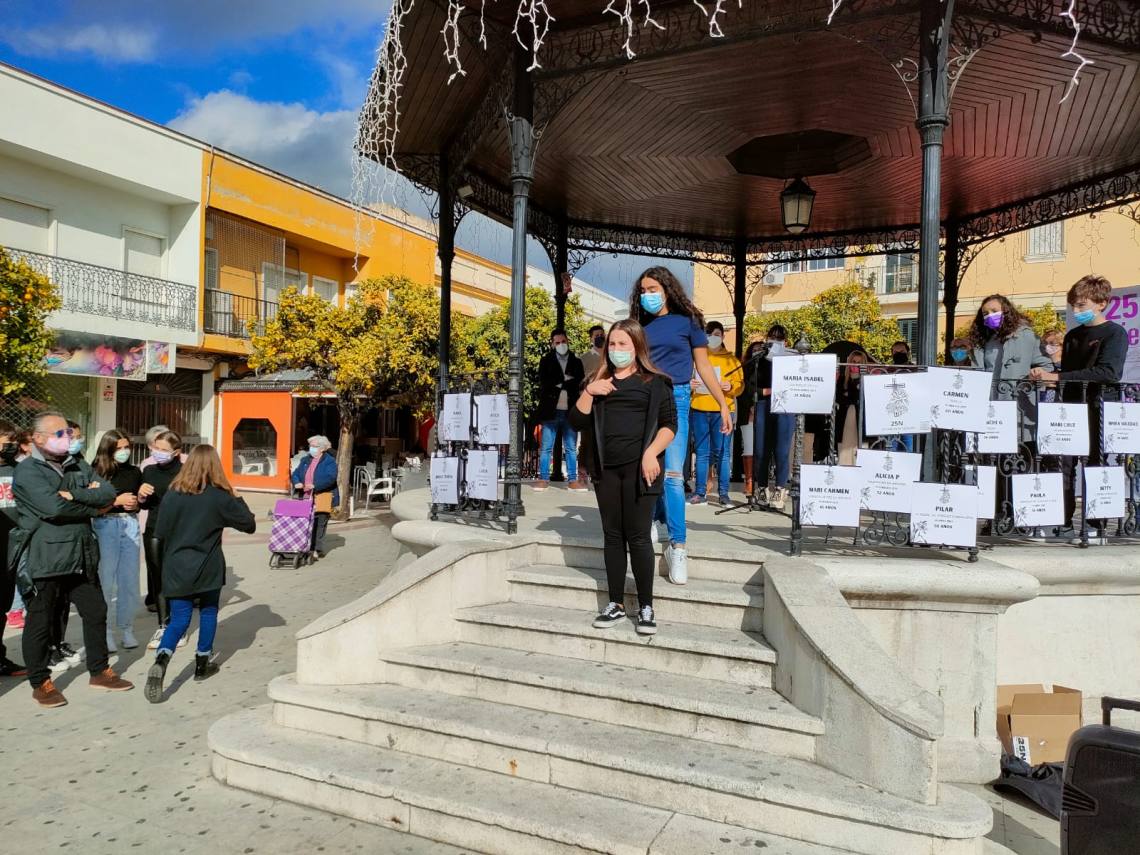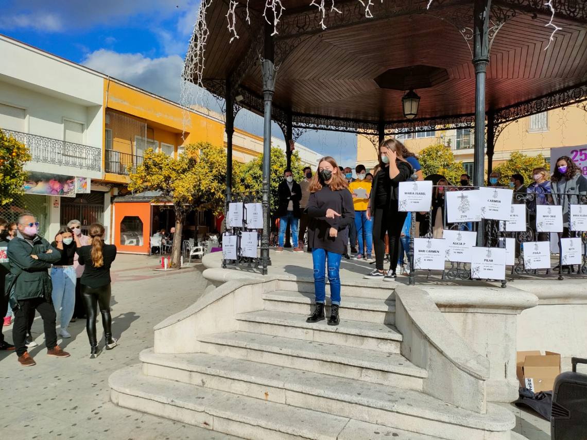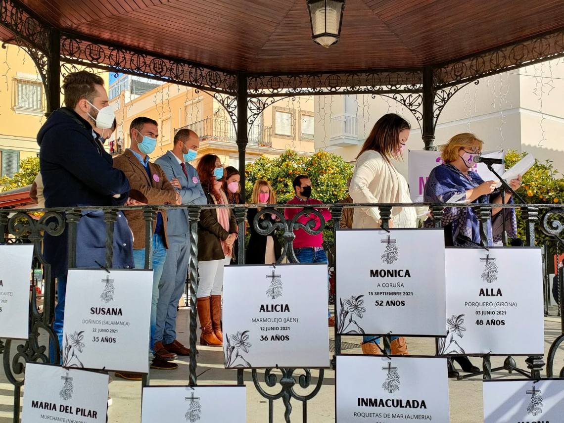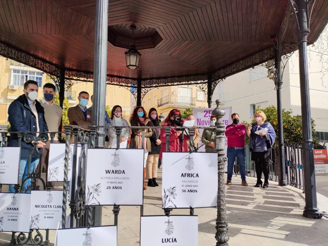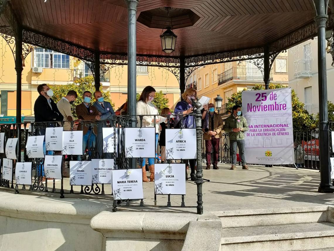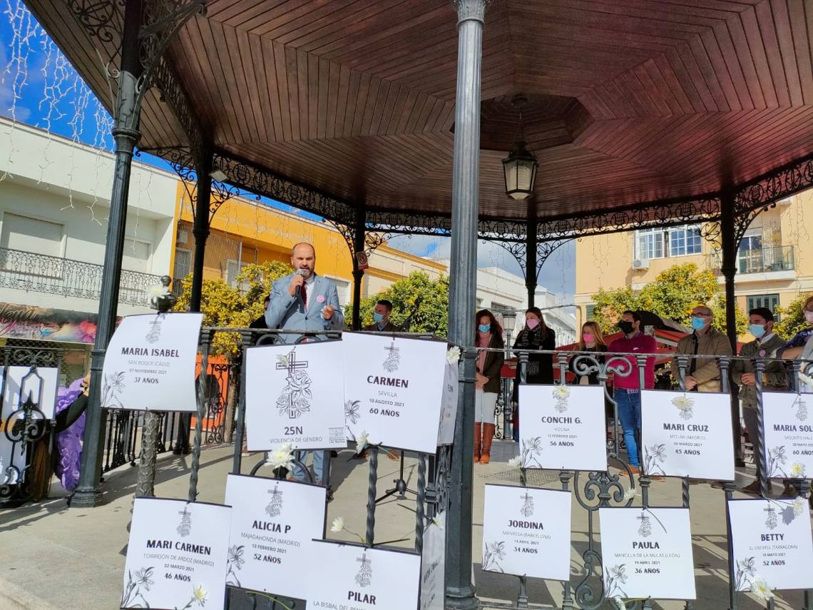 El acto ha sido conducido por la concejala Sara Lobato y ha comenzado con un minuto de silencio en memoria de las mujeres fallecidas en lo que va de 2021. En este homenaje se ha leído el nombre y la edad de estas mujeres asesinadas por sus parejas o exparejas, y en especial el recuerdo a María Isabel, vecina de San Roque y asesinada hace apenas tres semanas.