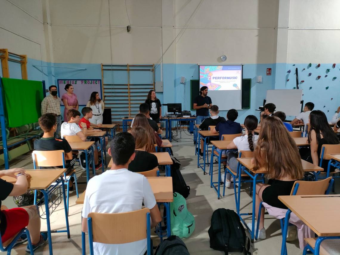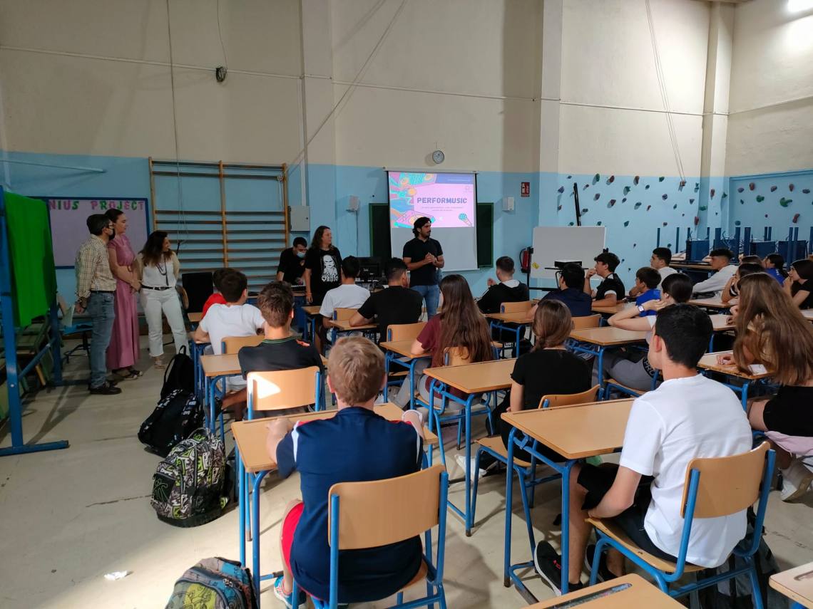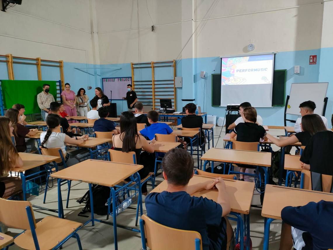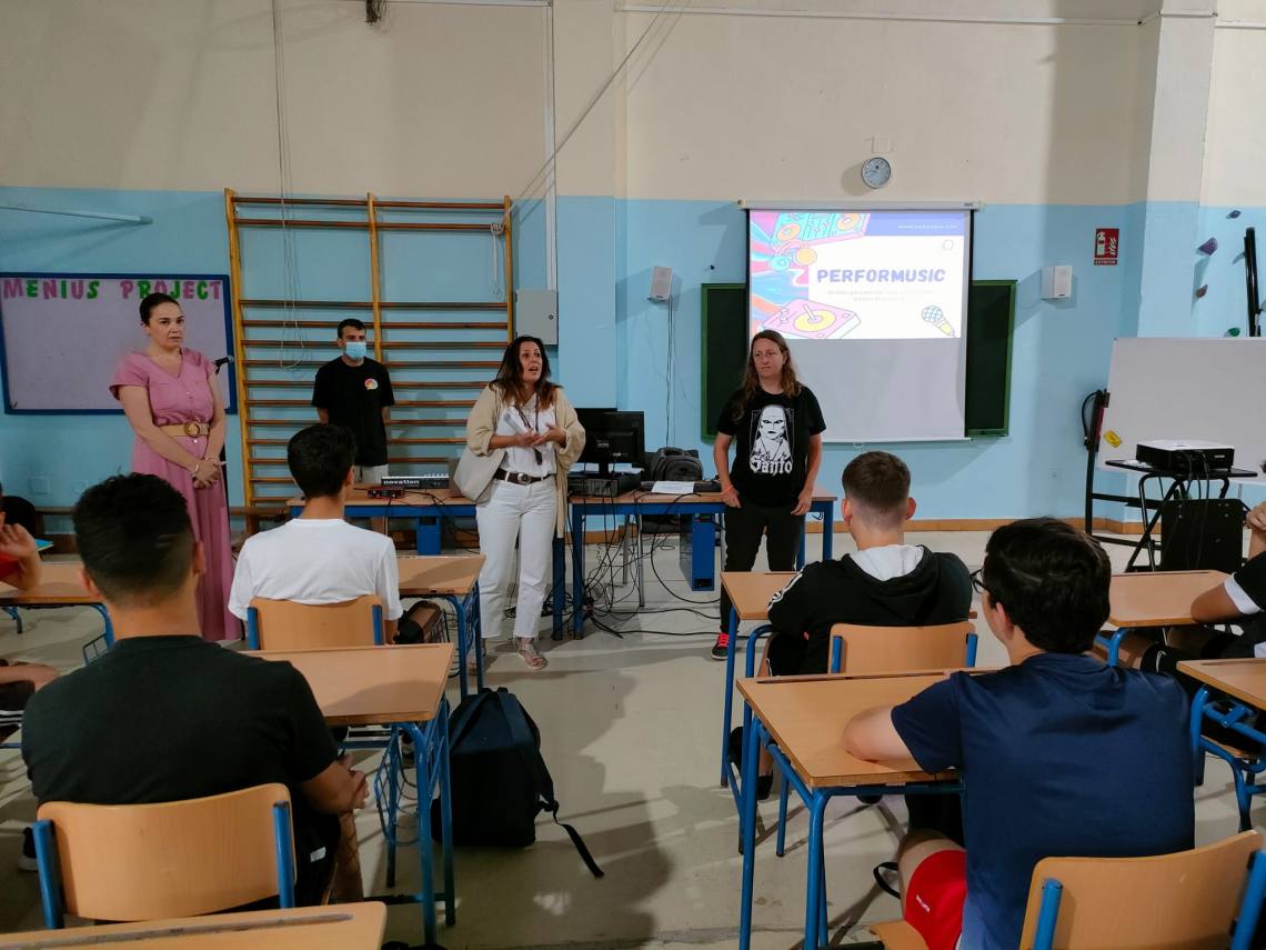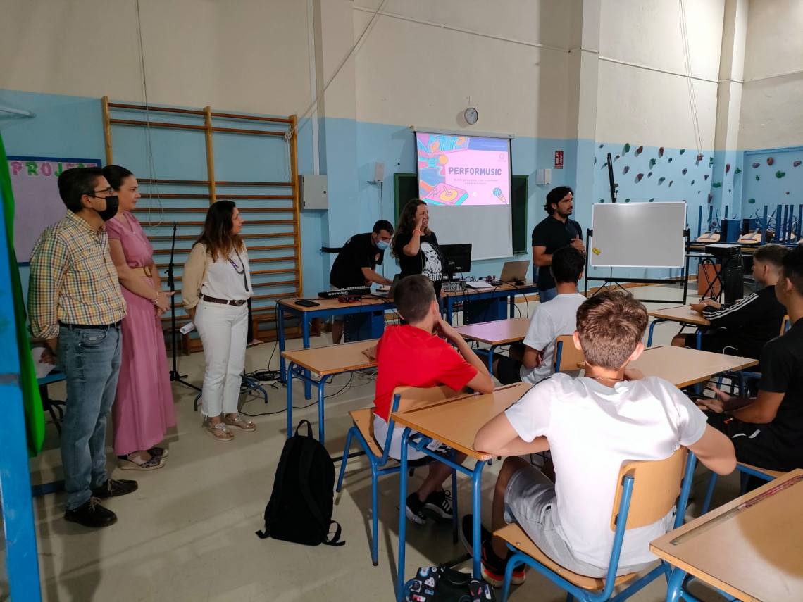 La delegada de Participación Ciudadana, Inmaculada Domínguez, ha asistido esta mañana en el IES Sierra Luna a la primera sesión del taller ‘Performusic’, organizado por la delegación municipal de Políticas de Igualdad y que pretende analizar y inculcar, a través de la música, valores de respeto e igualdad.