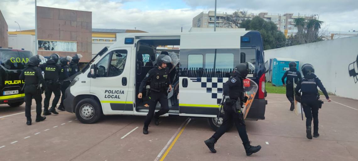 Agentes del Grupo Operativo de Apoyo y Prevención (GOAP) de la Policía Local de Los Barrios han impartido en La Línea el curso ‘Control de masas y Dispositivos Estáticos de Control para Unidades de Intervención’, en una jornada organizada por la Unidad de Respuesta Inmediata (U.R.I.) de la Policía Local linense como unidad anfitriona.