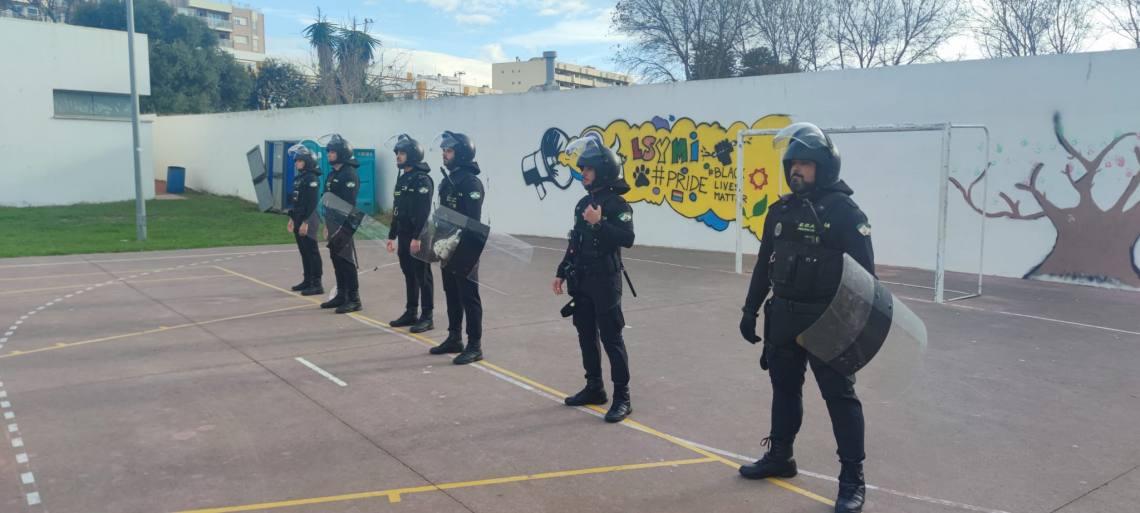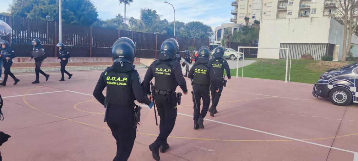 Los agentes han realizado una serie de ejercicios para la adquisición de técnicas y tácticas policiales para conseguir el control de masas y poder garantizar la seguridad en grandes eventos como conciertos, festejos en la vía pública o acontecimientos deportivos, donde la intervención conjunta en este tipo de aglomeraciones, en la que destaca el trabajo en equipo, redunde en la prestación de un servicio más eficaz y de mayor calidad a la ciudadanía.