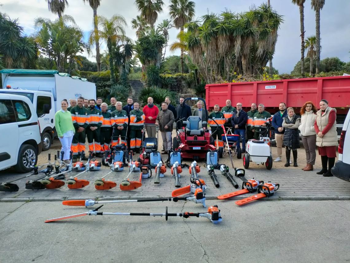El alcalde de Los Barrios, Miguel Alconchel, ha presentado esta mañana a la empresa Valoriza Servicios Medioambientales S.A., encargada del mantenimiento y conservación de zonas verdes y arbolado del municipio.