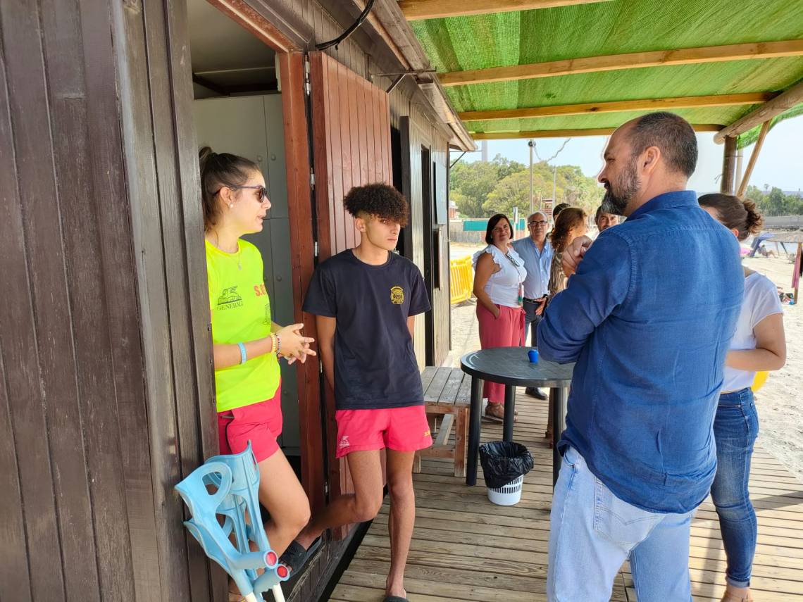 Alconchel supervisa el dispositivo de socorrismo y vigilancia puesto en marcha en la playa de Palmones