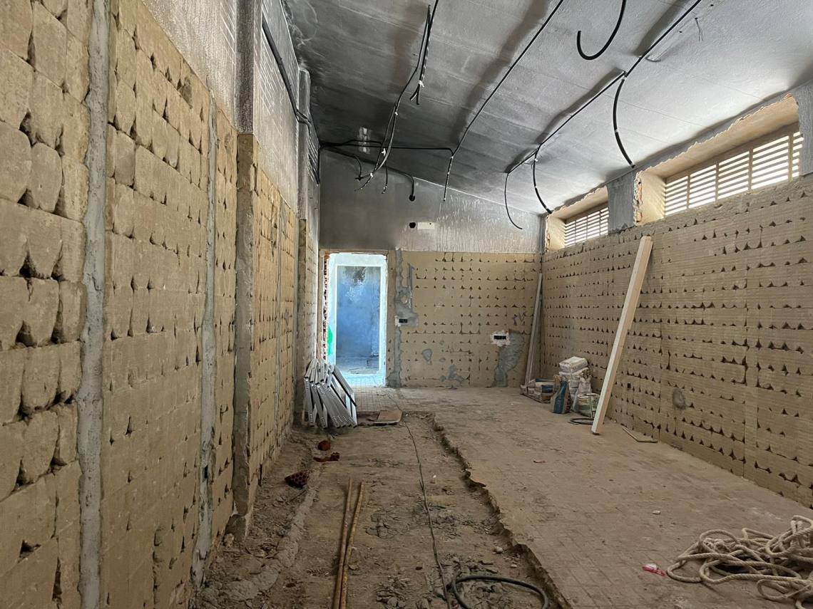 La actuación está consistiendo en la adaptación de lo que fuera la zona de vestuarios y duchas del complejo de la piscina para su conversión en unas instalaciones adecuadas para la citada asociación sobre una superficie aproximada de unos 140 metros cuadrados.