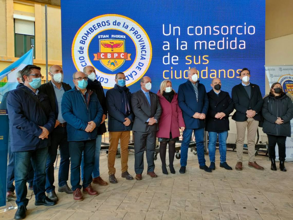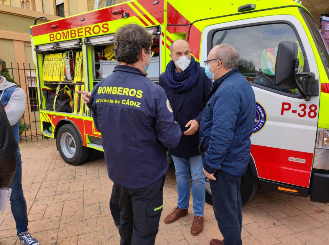 El alcalde de Los Barrios, Miguel Alconchel, y el concejal de Protección Civil y consejero del Consorcio de Bomberos, José Antonio Gómez, han asistido en La Línea a la presentación de los nuevos vehículos del Consorcio Provincial de Bomberos y que se van a destinar a la comarca.