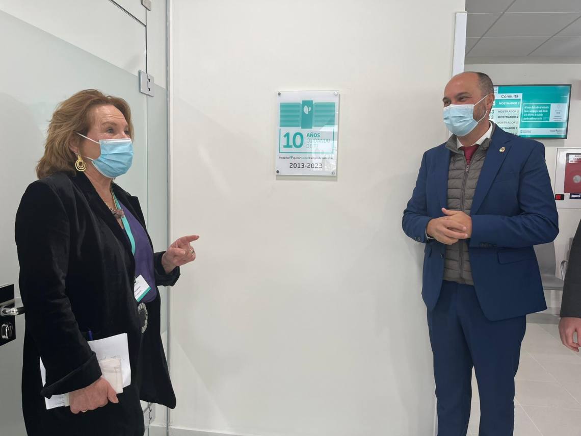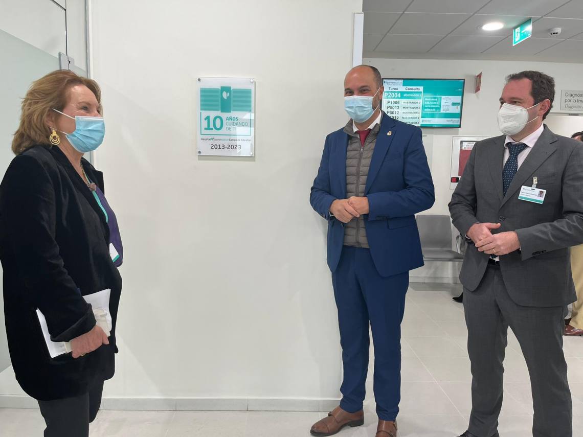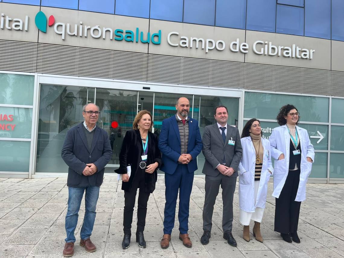 El alcalde de Los Barrios, Miguel Alconchel, y el delegado de Palmones, José Antonio Gómez, han acudido esta mañana al hospital Quirón Campo de Gibraltar, con motivo de la celebración del décimo aniversario de su apertura en 2013.