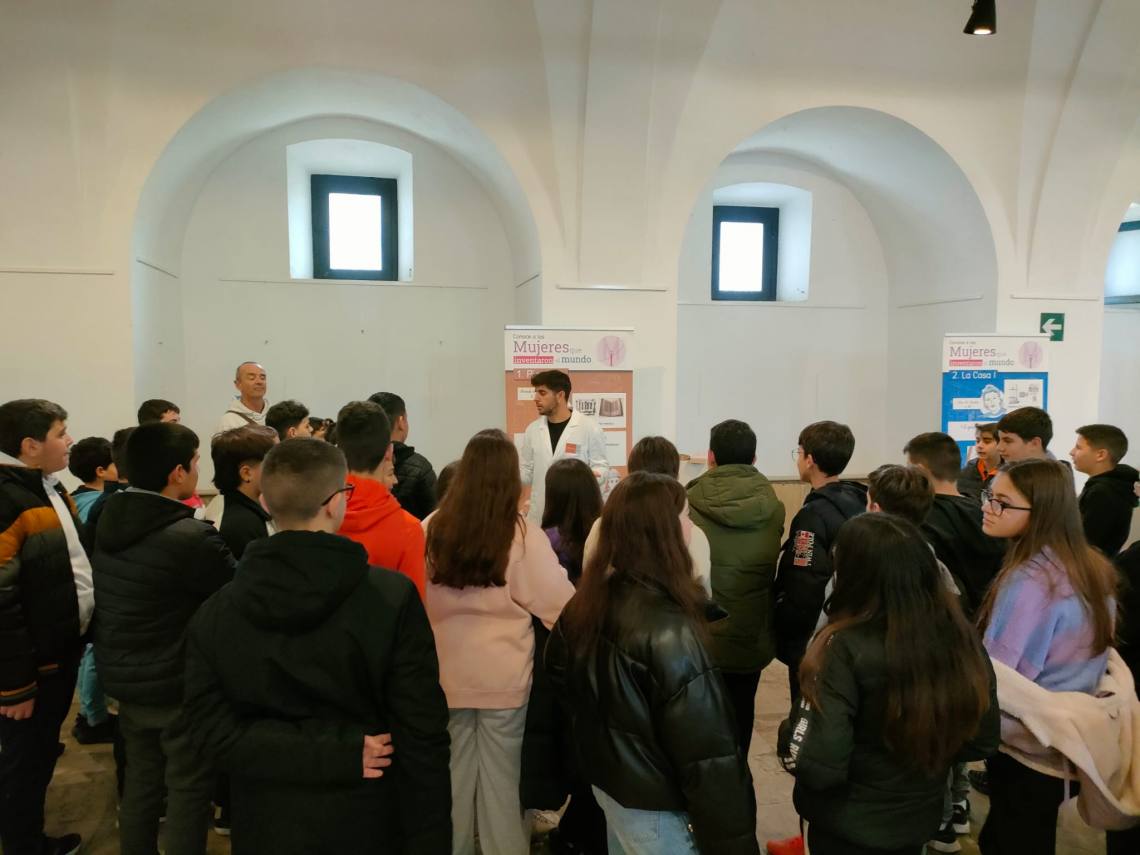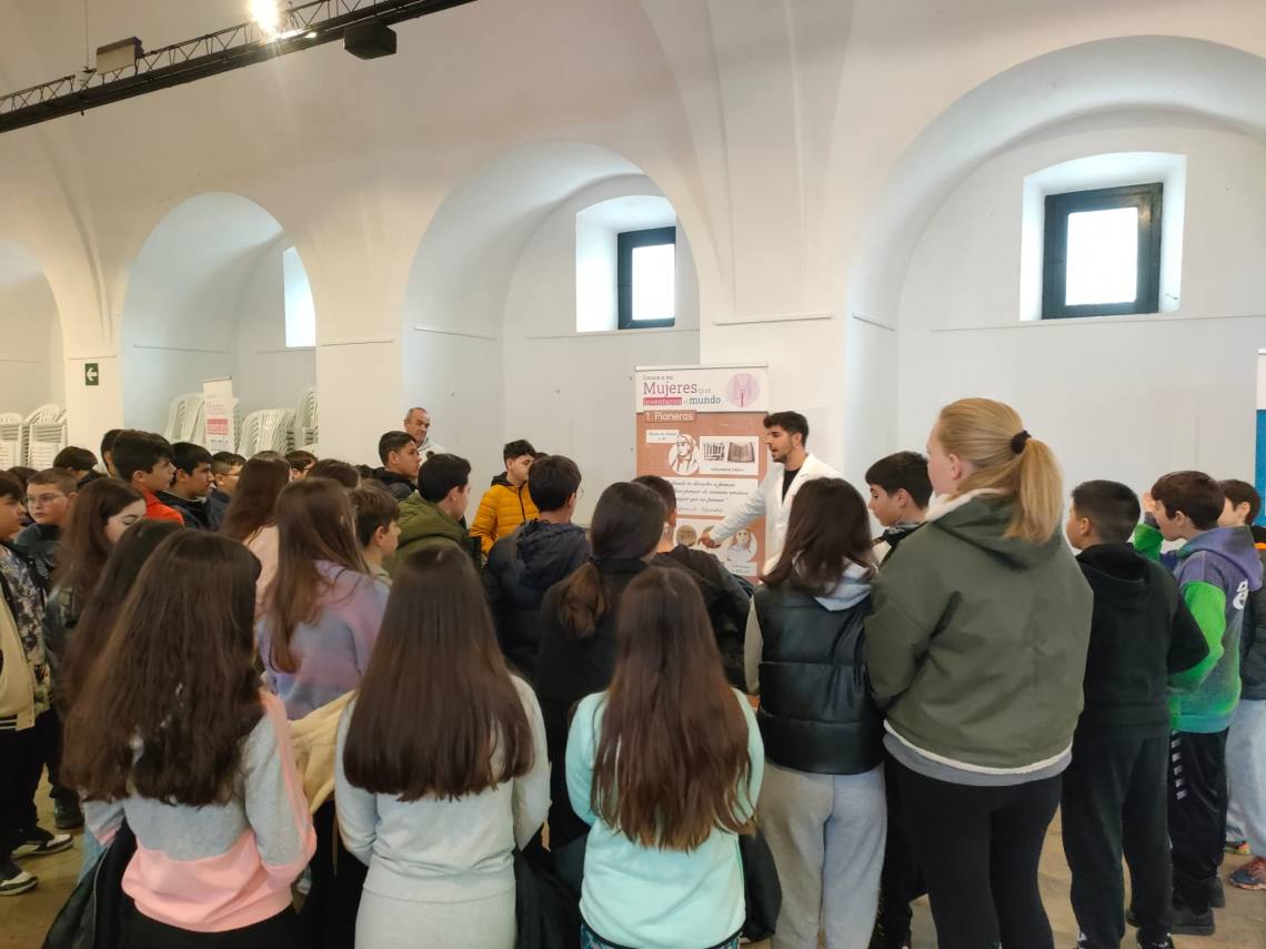 El alcalde también ha dado la bienvenida al primer grupo de alumnos del IES Carlos Cano que ha visitado la muestra. A lo largo de la mañana irán pasando los distintos alumnos de los IES del municipio.