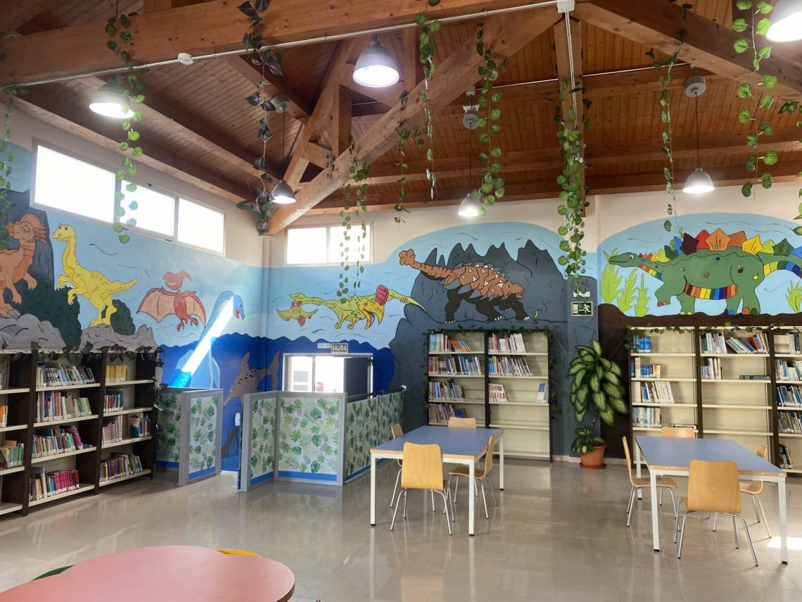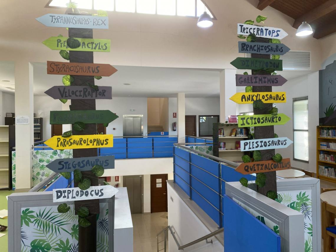 Junto a la propia sala que conforma la “dinoteca” también se ha remozado la escalinata de acceso desde la entrada principal de la biblioteca, cuyos peldaños se han pintado de colores y de mensajes que animan a chicos y chicas a que se sumerjan en el fascinante universo de la lectura.