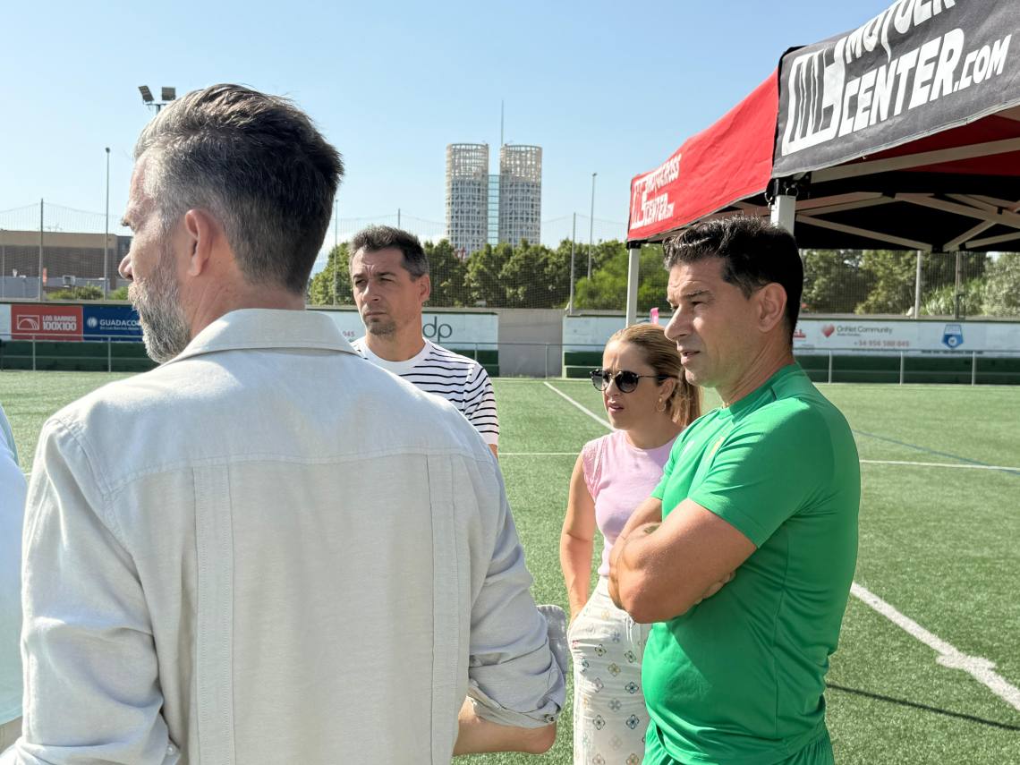 El concejal de Deportes, Raúl Álvarez, la delegada de Los Cortijillos, May Gallego; y el edil de Servicios Sociales, Carlos Torres, han visitado esta mañana las instalaciones del campo de fútbol ‘Antonio Gavira’ de Los Cortijillos, donde se está celebrando esta semana el Campus de Verano del Cádiz CF.