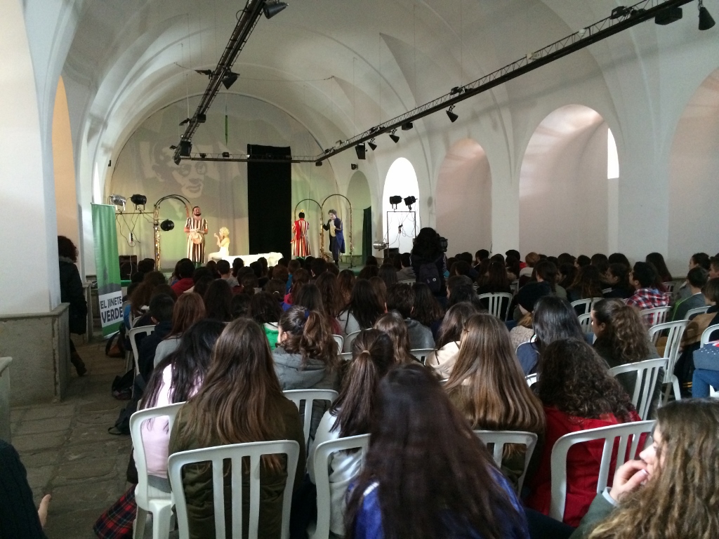Un grupo de alumnos de 3º y 4º de ESO del Instituto Sierra Luna y Carlos Cano de Los Barrios han asistido este mediodía en el edificio Pósito a la representación de la obra de teatro «Amor de Don Perlimplin con Belisa en su jardín»  de Federico García Lorca, de la compañía ‘El Jinete Verde’. Una representación que forma parte de la programación de las II Jornadas Andaluzas.
