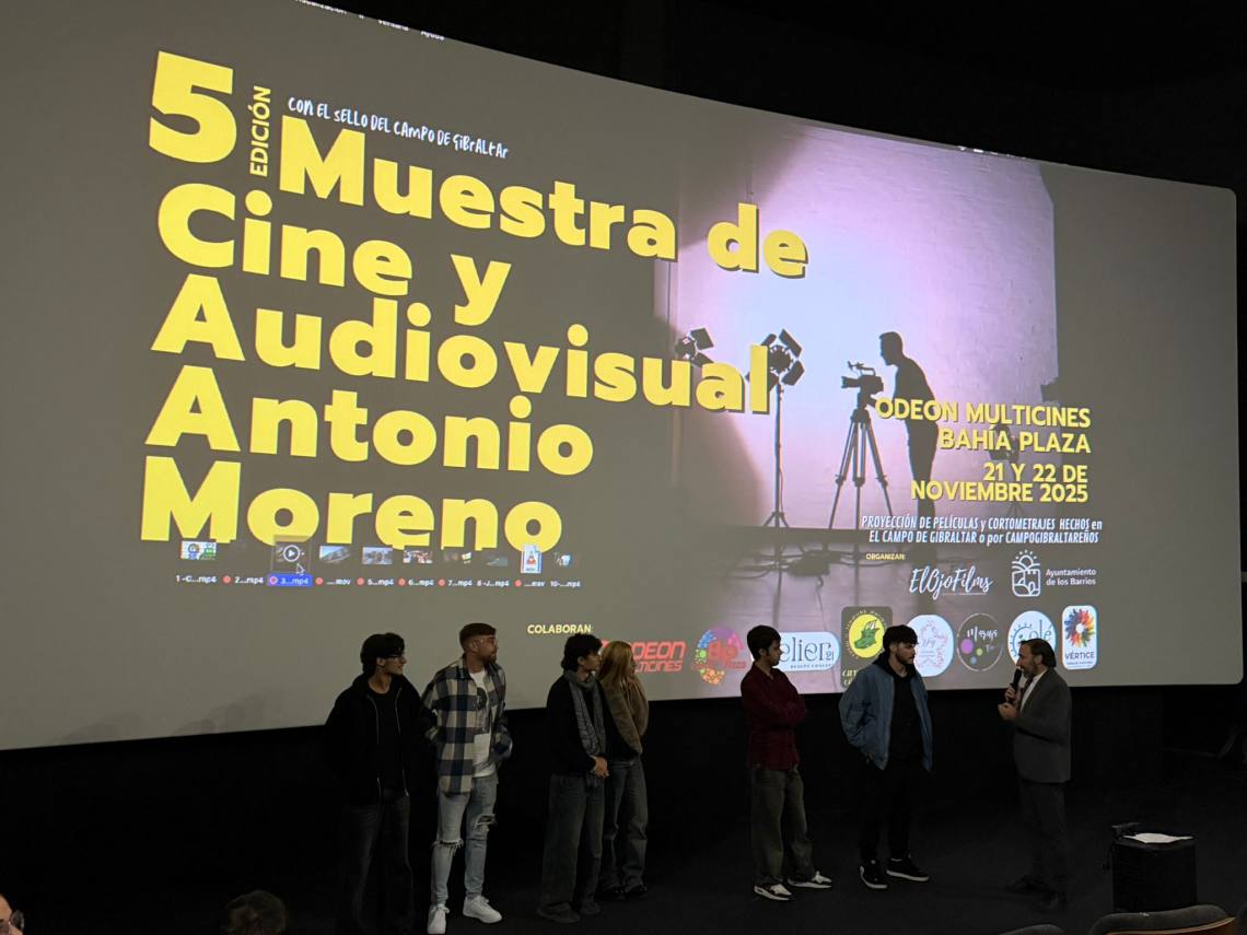 La V Muestra de Cine y Audiovisual ‘Antonio Moreno’ abrió anoche sus puertas en Odeón Multicines Bahía Plaza con una destacada asistencia de público y una programación que volvió a poner en valor el talento cinematográfico y creativo del Campo de Gibraltar. En representación del Ayuntamiento de Los Barrios estuvieron presentes la delegada de Cultura, Cristina Marchante, y el delegado de Servicios Sociales, Carlos, que acompañaron a los directores y equipos de los distintos trabajos proyectados durante la primera jornada.