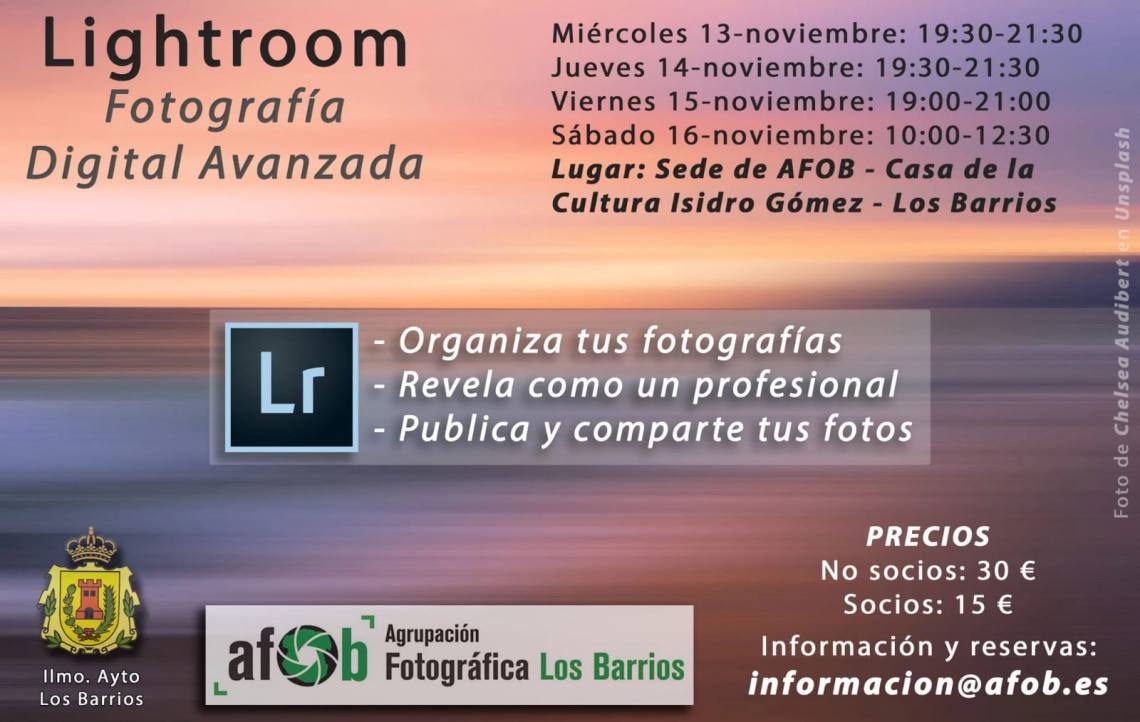 Con la colaboración de la delegación municipal de Cultura, que dirige Daniel Pérez Cumbre, la Agrupación Fotográfica de Los Barrios (AFOB) ha organizado un curso sobre el uso de Adobe Photoshop Lightroom, aplicación informática de fotografía digital desarrollada por Adobe Systems para Mac OS X y Microsoft Windows, diseñada para ayudar a fotógrafos profesionales y aficionados en el tratamiento de [...]
