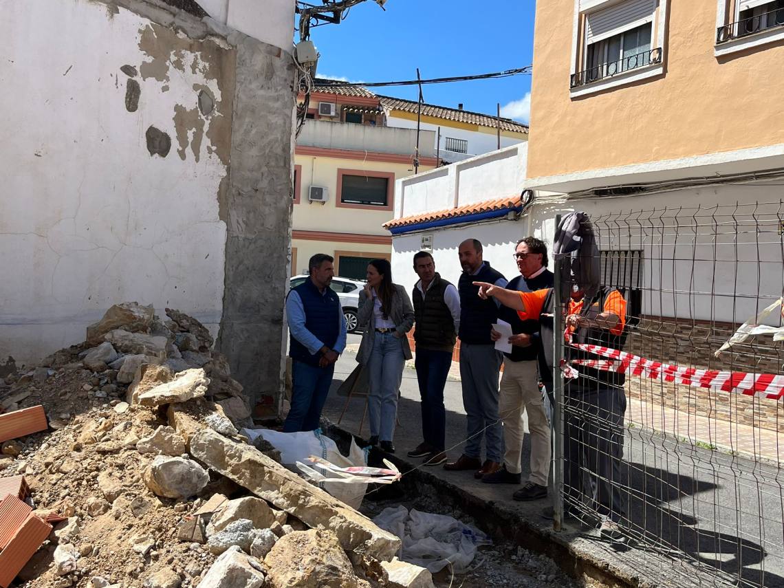 El alcalde de Los Barrios, Miguel Alconchel; la delegada de Urbanismo, Sara Lobato; y el edil de Turismo, Pablo García, han supervisado el avance de las obras de la nueva plaza pública, que se ejecuta en un solar situado en la esquina entre las calles Altozano y Palmonillo.
