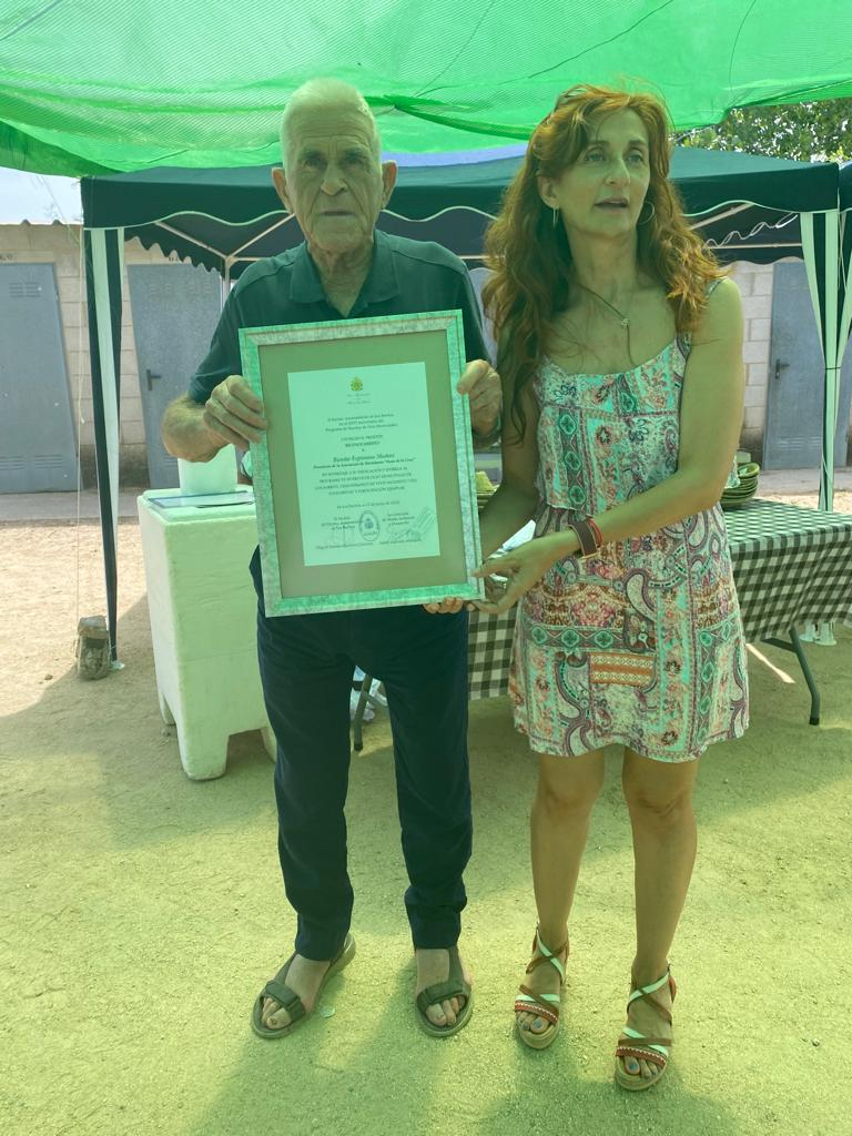 Tras la comida, la delegada de Medio Ambiente del Consistorio barreño ha procedido a entregar unas placas de reconocimiento, por su labor, al presidente de la Asociación de Hortelanos ‘Haza de la Cruz’, Benito Espinosa, y también a su vicepresidente, Cristóbal Palacios.