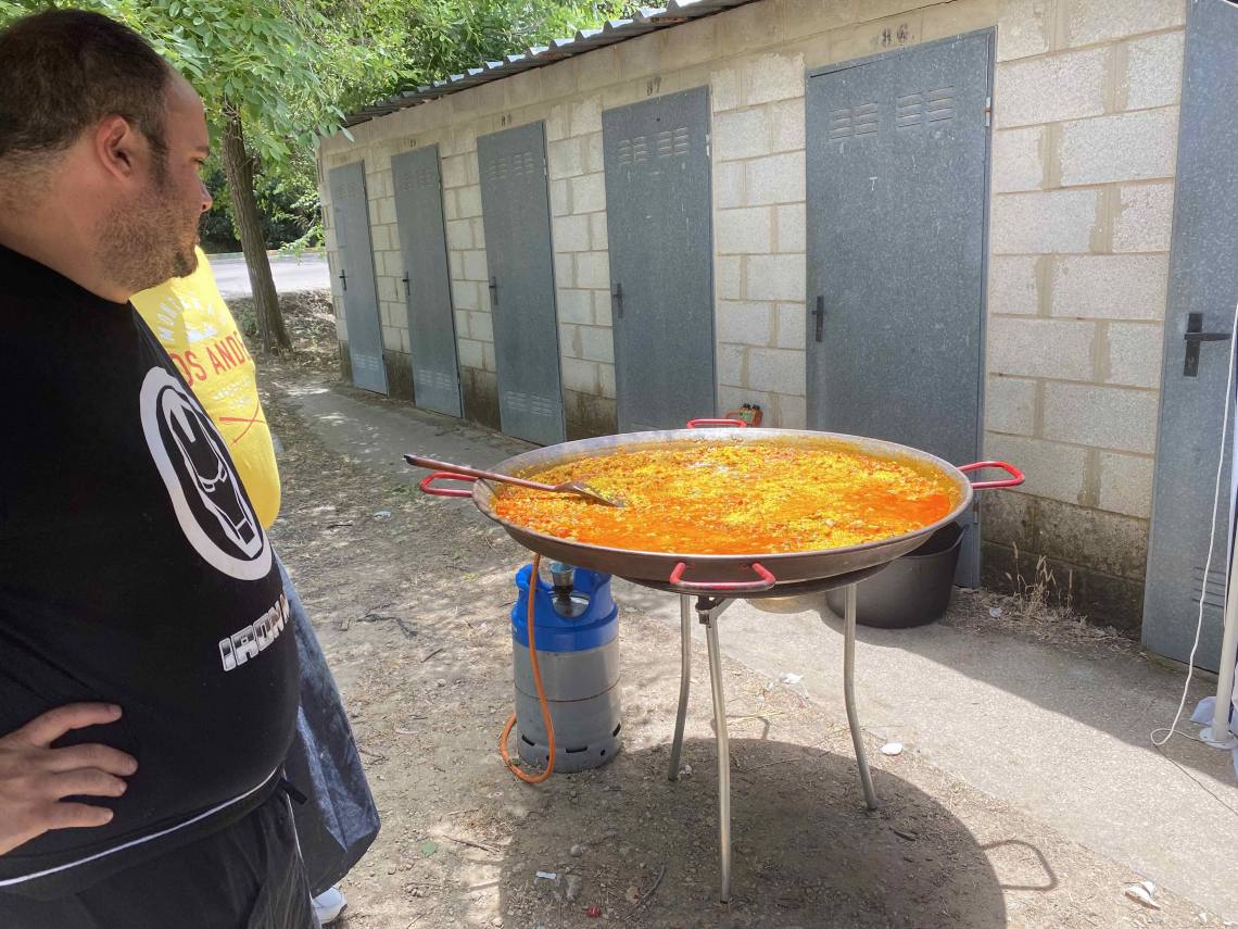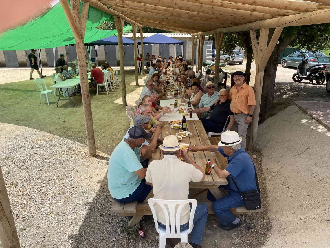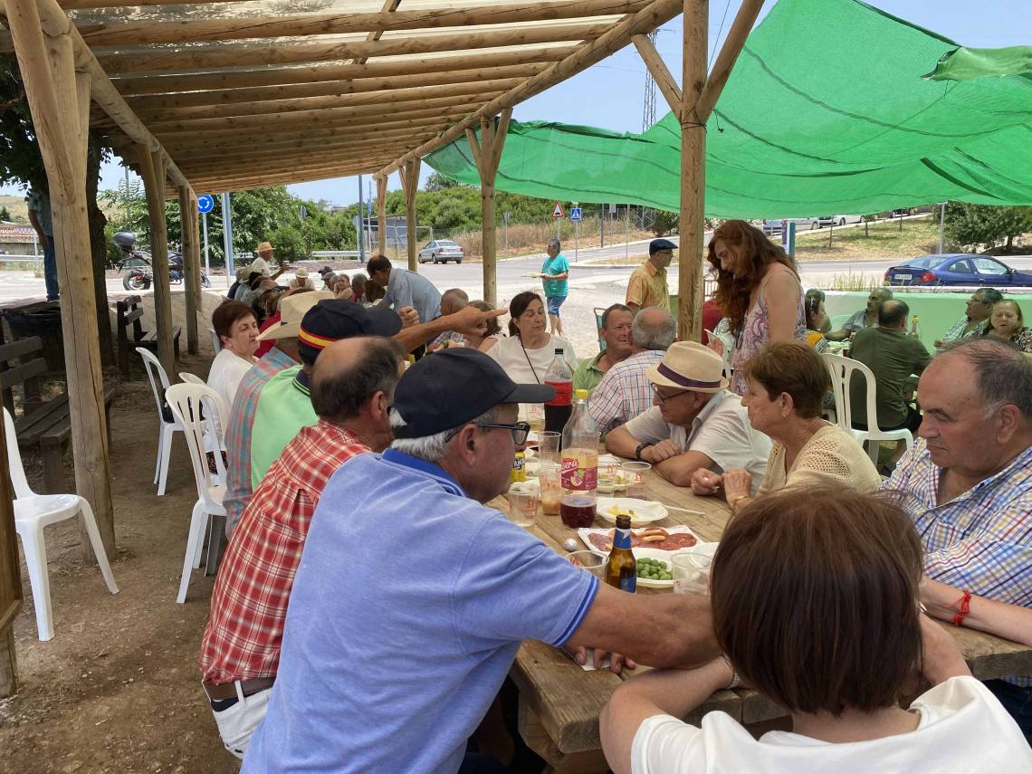 Más de 60 personas se han reunido para vivir un rato agradable de convivencia y degustar un menú de entremeses, chicharrones típicos barreños y una gran paella, con vino, cerveza, refrescos y agua.