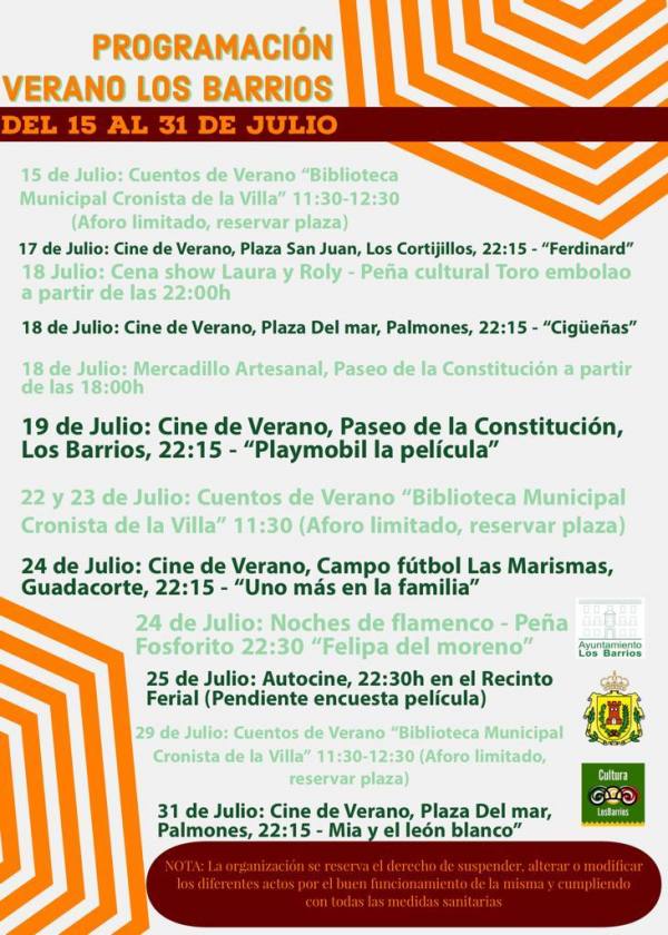 El concejal de Festejos y Cultura, Daniel Pérez Cumbre, ha dado a conocer la programación de verano 2020 de Los Barrios para la segunda quincena del mes de julio y donde destacan las sesiones de cine de verano para los más pequeños en Palmones, Los Cortijillos, Guadacorte y en Los Barrios Centro. El 17 de julio se proyectará en la [...]