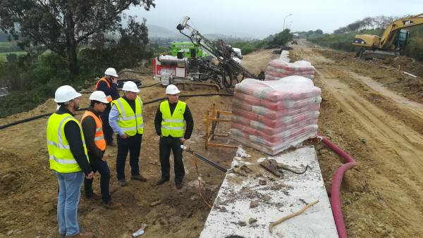 Las obras de remodelación de la carretera de acceso Este de Los Barrios avanzan a pesar del mal tiempo de las últimas semanas