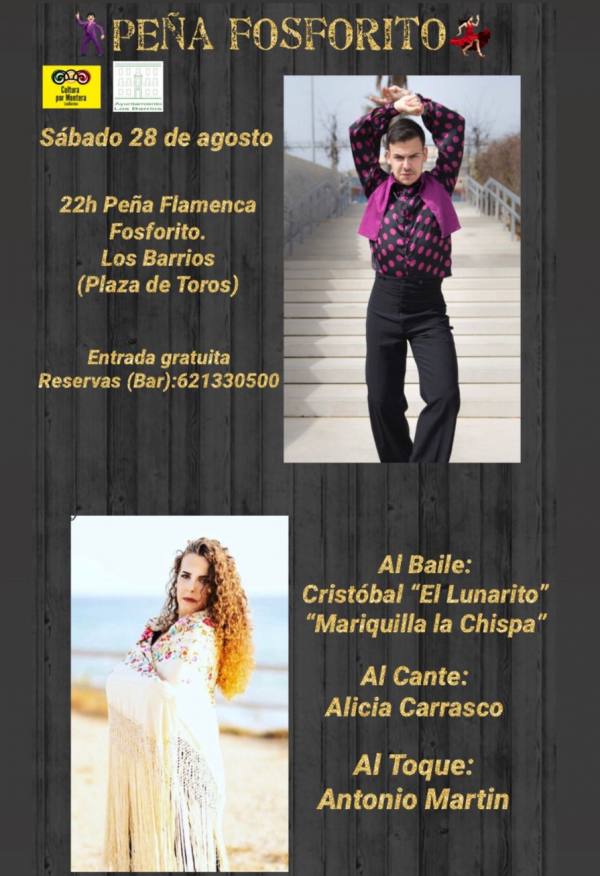 La sede de la Peña Cultural Flamenca ‘Fosforito’ acogerá el próximo sábado, 28 de agosto, a partir de las 22:00 h., un nuevo espectáculo flamenco a cargo de la cantaora Alicia Carrasco y los bailaores Cristóbal “El Lunarito”, vecino de Los Barrios, y “Mariquilla La Chispa”, acompañados a la guitarra por Antonio Martín. Esta actividad, una más de las muchas [...]
