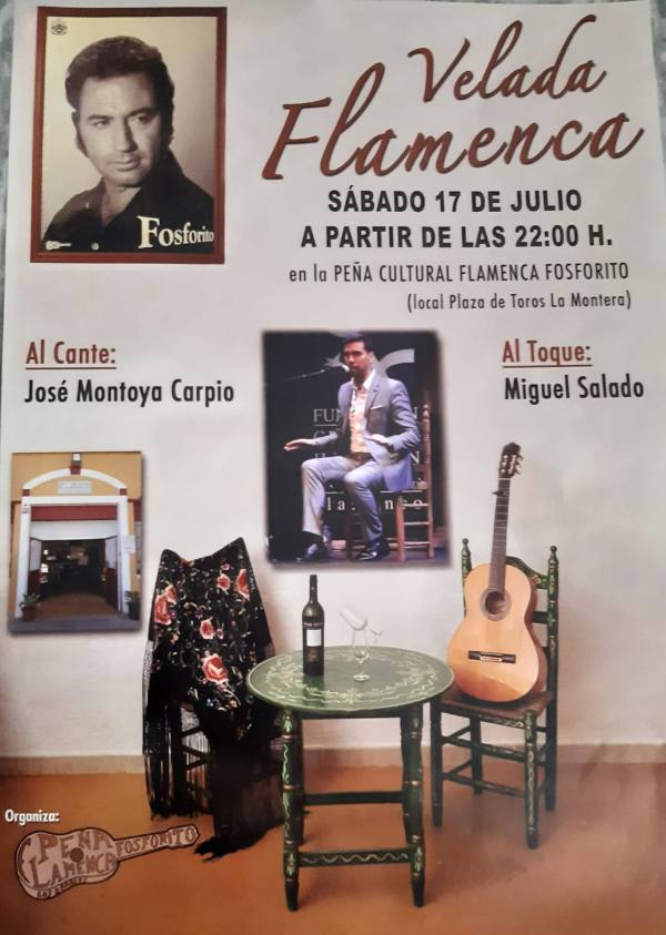 La sede de la Peña Cultural Flamenca ‘Fosforito’ acogerá el próximo sábado, 17 de julio, a partir de las 22:00 h., una velada flamenca a cargo del cantaor José Montoya Carpio, que estará acompañado a la guitarra por Miguel Salado. Esta actividad, una más de las muchas que organiza la citada entidad para la promoción de todo lo relacionado con [...]