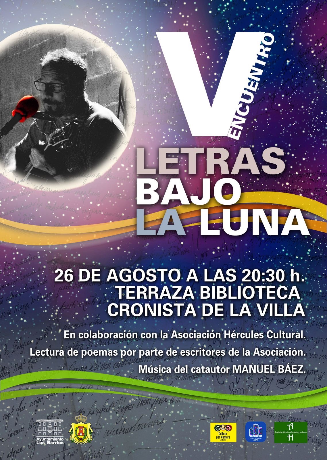 Lectura de poemas a cargo de escritores de la Asociación Hércules y actuación del cantautor Manuel Báez. El concejal delegado de Cultura del Ayuntamiento de Los Barrios, Manuel Molina, informa que el V Encuentro Letras bajo la Luna, aplazado el pasado día 11 de agosto por inclemencias meteorológicas, se va a celebrar este sábado 26 de agosto en la Terraza [...]