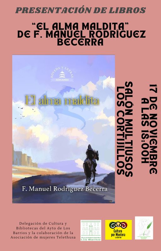 El IX Ciclo ‘Escritores’ continúa esta semana con la presentación del libro “El alma maldita”, de F. Manuel Rodríguez Becerra, en el salón del edificio multiusos de Los Cortijillos. La cita tendrá lugar el próximo viernes, 17 de noviembre, a las 18:00 h. La obra “El alma maldita” es una novela de fantasía y aventuras publicada por Bóveda y Letras [...]