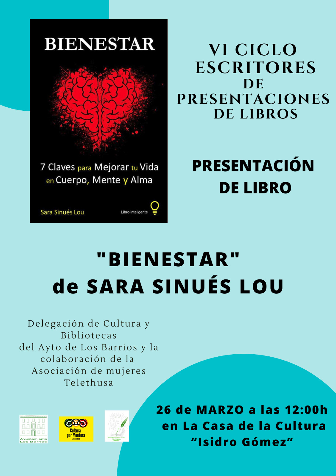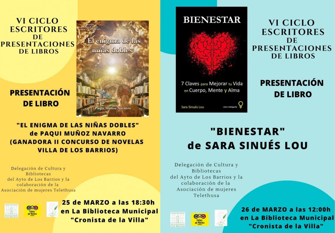 Tras la presentación de la obra “El enigma de las niñas dobles”, de Paqui Muñoz Navarro, el próximo viernes, la siguiente sesión del VI Ciclo ‘Escritores’ tendrá lugar el día siguiente, sábado, 26 de marzo, con el libro titulado “Bienestar”, de Sara Sinués Lou. La cita, en la Casa de la Cultura ‘Isidro Gómez’, a las 12 del mediodía. “Bienestar” [...]