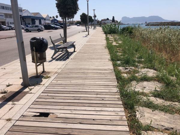 Gómez anuncia la reparación de desperfectos en bancos y la zona de tablas del Paseo Marítimo de Palmones
