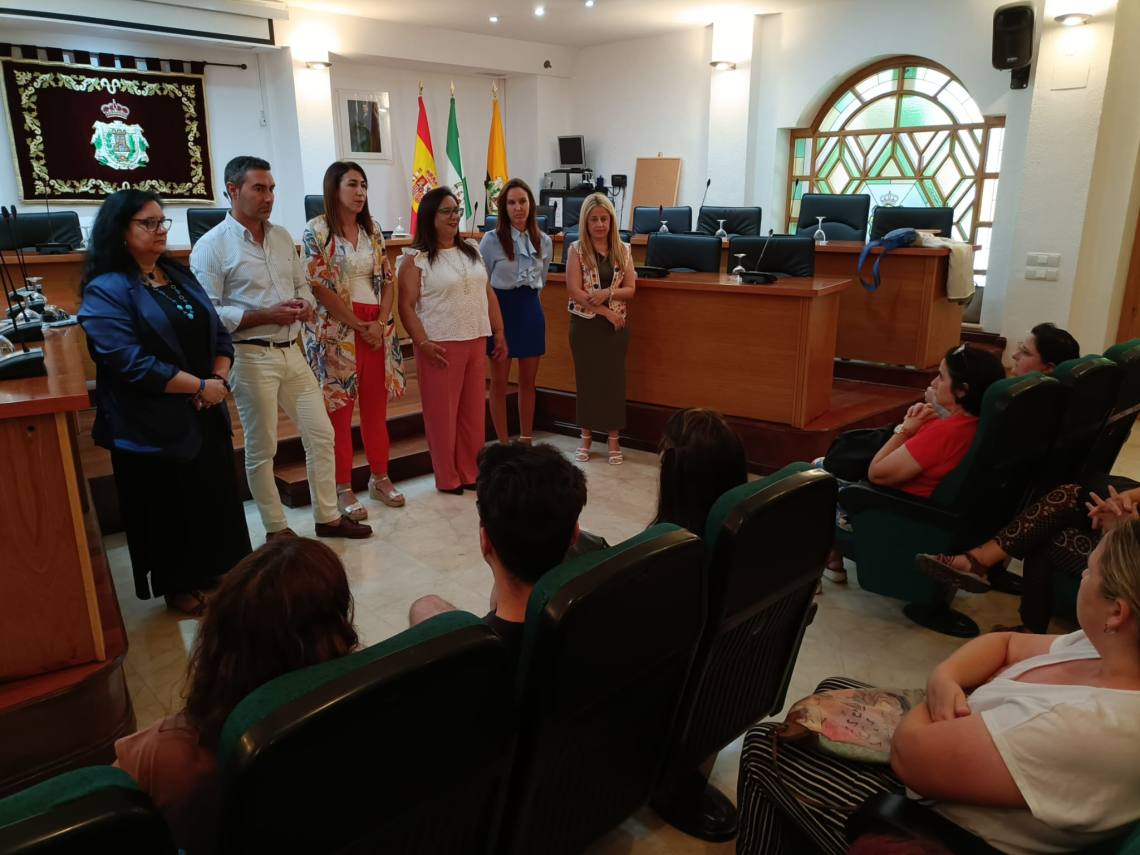 La vicepresidenta de Empleo y Formación de Mancomunidad, María Teresa García León; junto a los vicepresidentes también de la Mancomunidad, May Gallego y Pablo García; y la concejala de Empleo y Formación, Cristina Silva, han dado la bienvenida a los alumnos y alumnas que participan en estos cursos de formación.