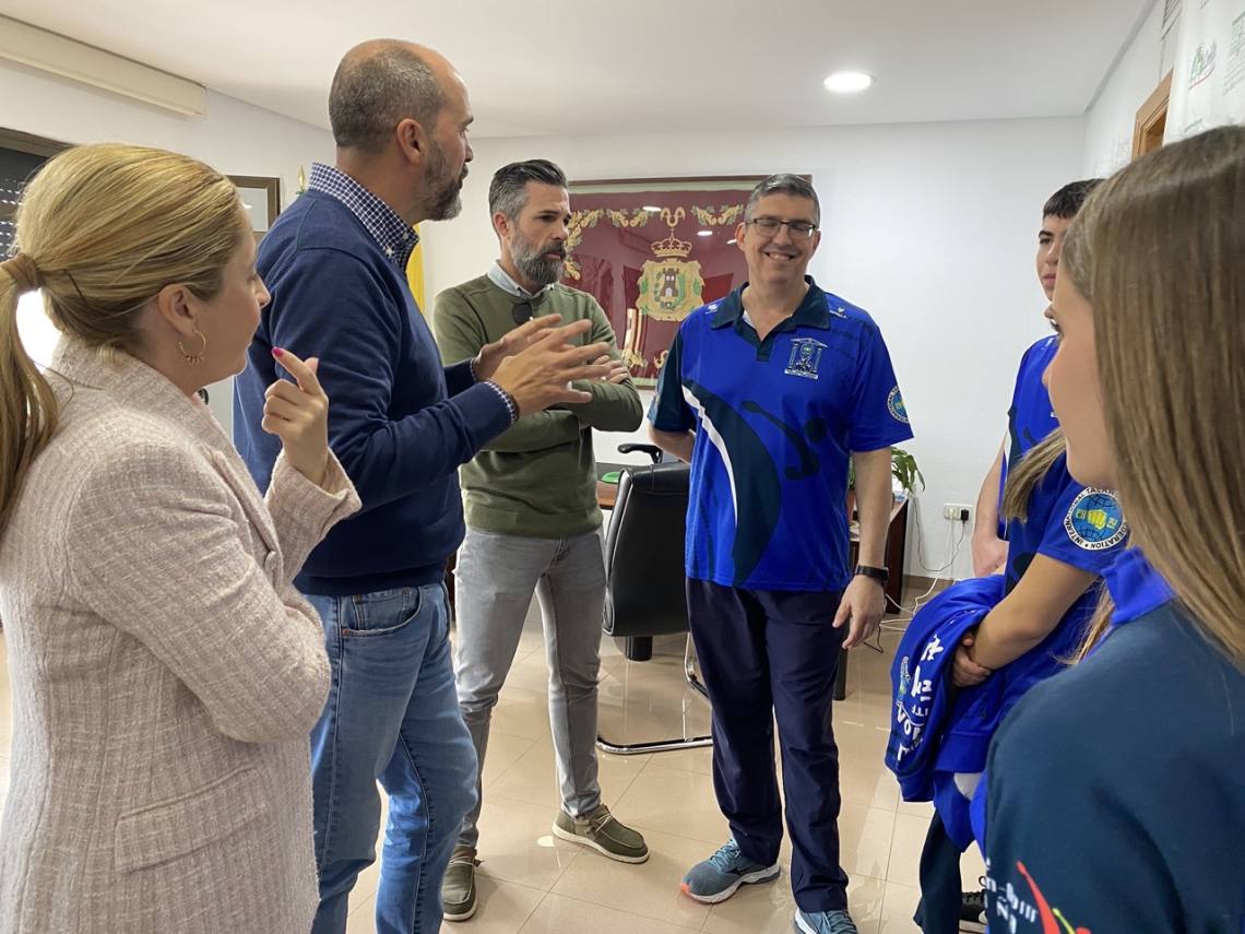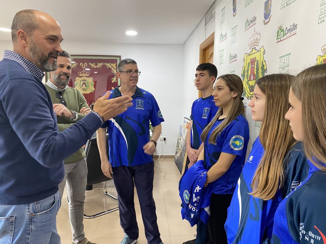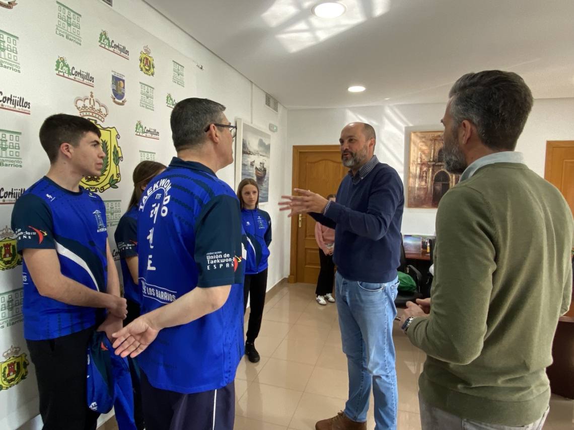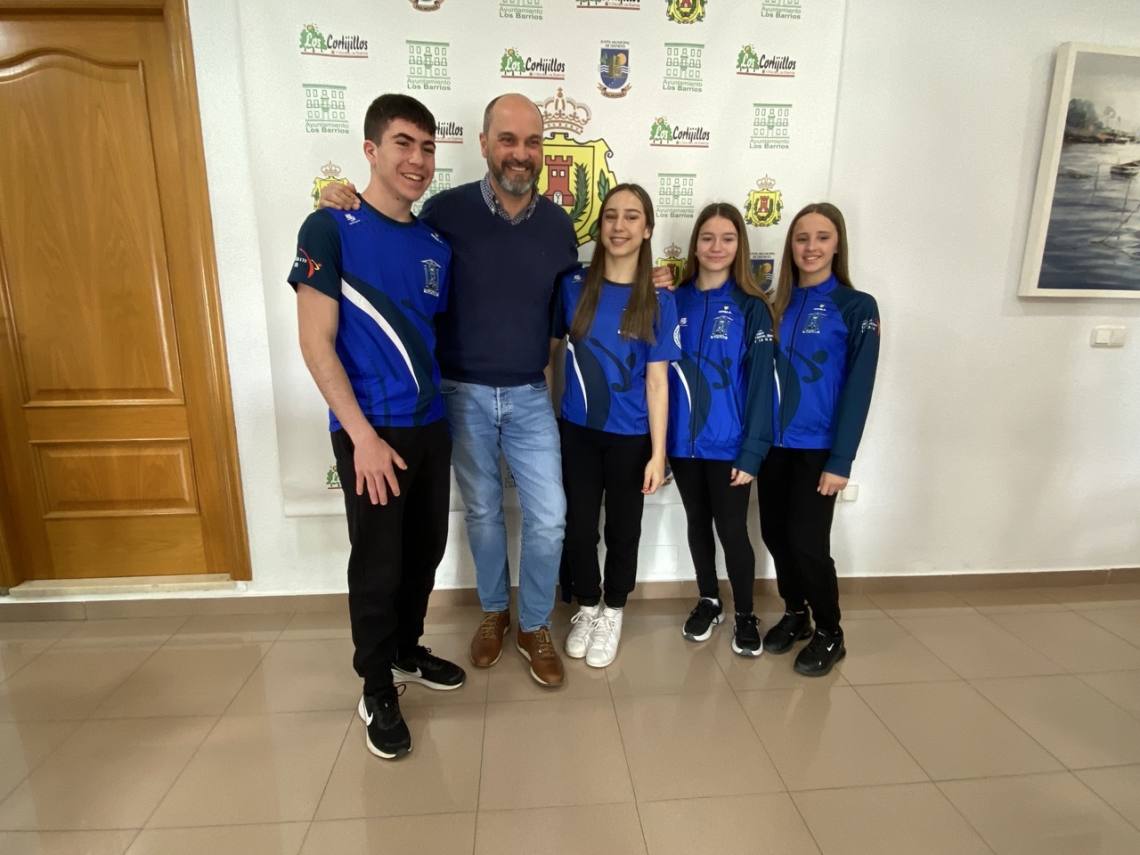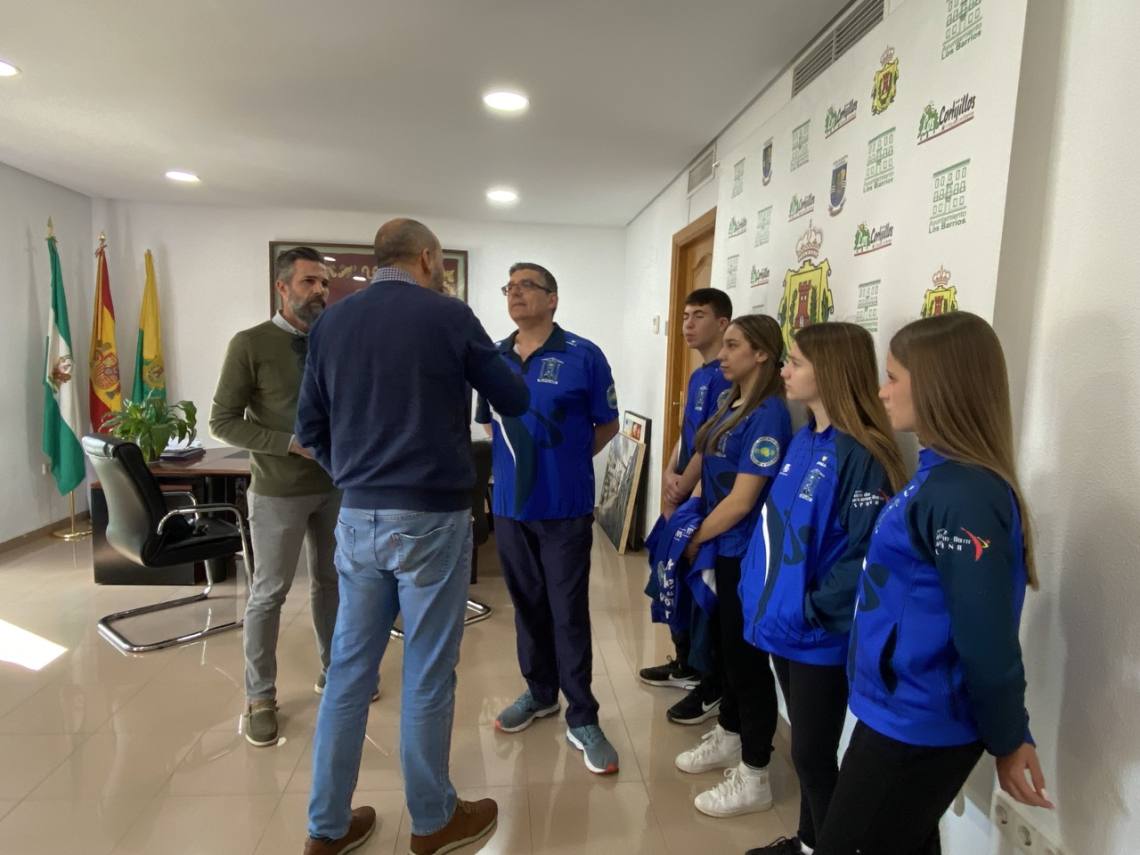 El alcalde de Los Barrios, Miguel Alconchel; el delegado de Deportes, Raúl Álvarez, y la delegada de Comunicación, May Gallego, han recibido esta mañana en alcaldía a los cinco miembros de la Academia de Taekwon-Do ITF de Los Barrios que representarán a España en el próximo campeonato de Europa.