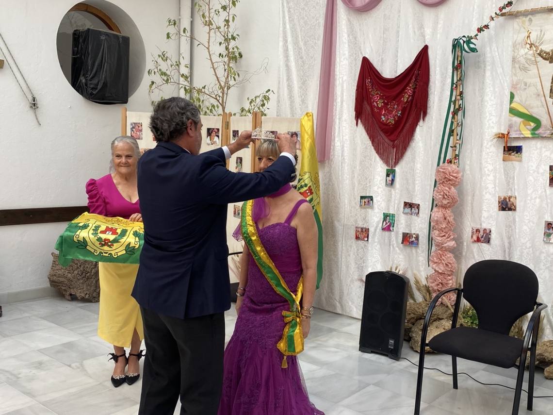 El alcalde de Los Barrios, Miguel Alconchel, y el delegado territorial de Inclusión Social, Juventud, Familias e Igualdad en Cádiz, Alfonso Candón, han presidido esta mañana el acto de coronación de la reina del Centro de Participación Activa para Personas Mayores de Los Barrios con motivo de la Feria y Fiestas Patronales en honor de San Isidro Labrador, que se celebran desde hoy hasta el próximo sábado, 17 de mayo.