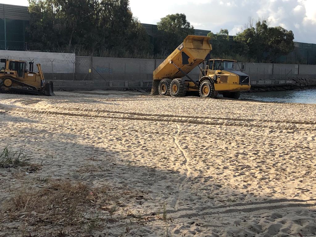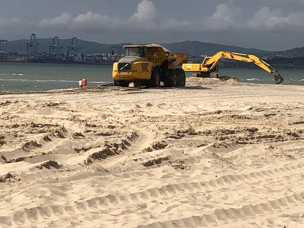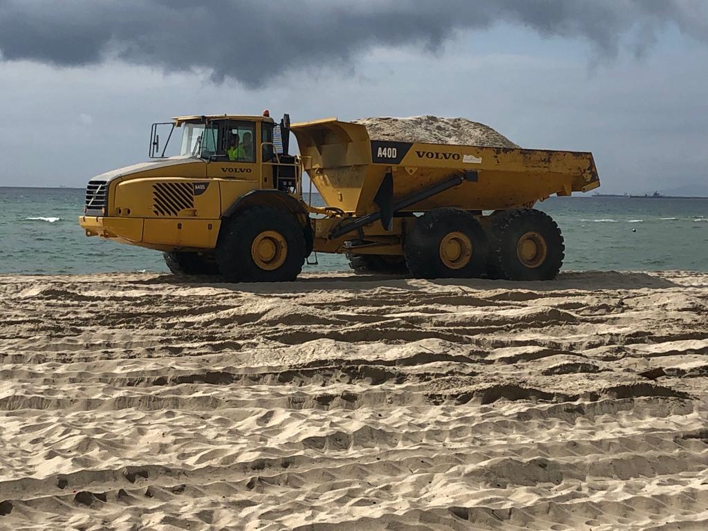 Varios camiones están llevando a cabo estos trabajos trasladando la arena de los costados del río a la playa y lo más cercana posible a la orilla, para garantizar de esta forma que progresivamente el ciclo de las mareas se encargue de ir afianzando este aporte a la playa.