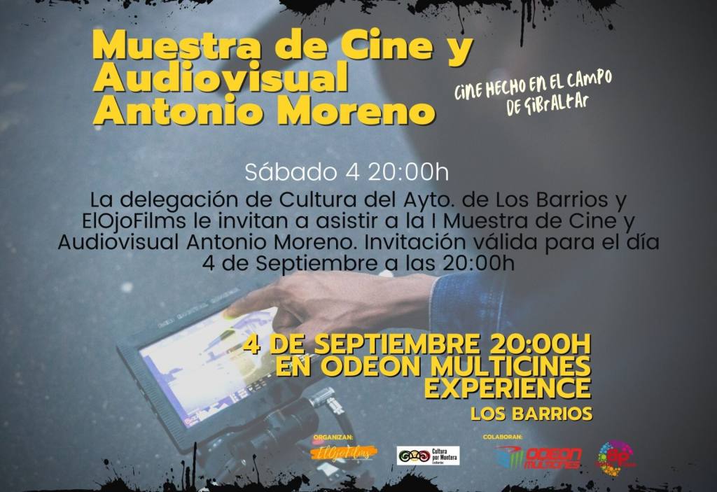 La delegación de Cultura, que dirige Daniel Pérez Cumbre, ha comenzado a facilitar hoy las invitaciones para poder asistir a la I Muestra de Cine y Audiovisual ‘Antonio Moreno’, que se celebrará en las instalaciones de Odeón Multicines, centro comercial Bahía Plaza de Palmones, los próximos días 3 y 4 de septiembre.