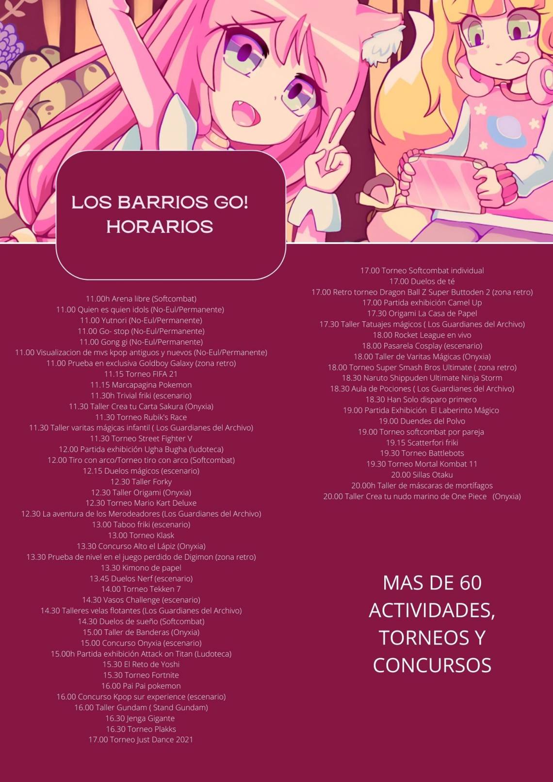 La programación contempla más de 60 citas diferentes a lo largo de la jornada entre las que también se cuentan concursos y torneos.