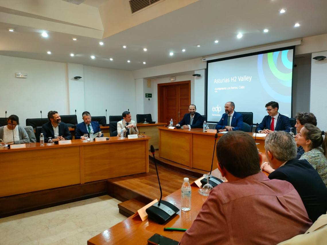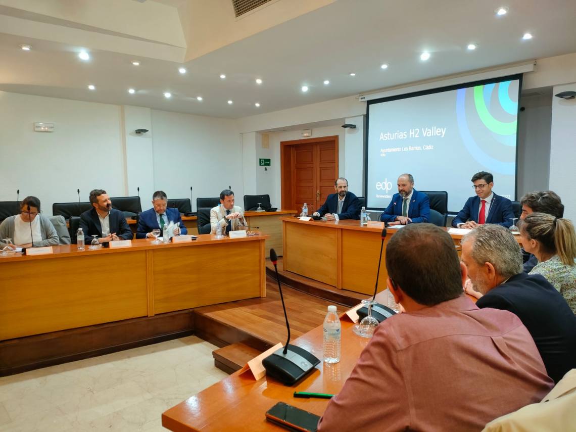 El director de Desarrollo y Ejecución de Proyectos de Hidrógeno de EDP, Rafael Cabañeros, ha presentado los avances de la iniciativa de la compañía energética en el Ayuntamiento de Los Barrios. La documentación presentada para esta tramitación ambiental recoge dos fases principales.