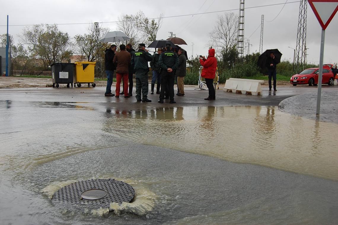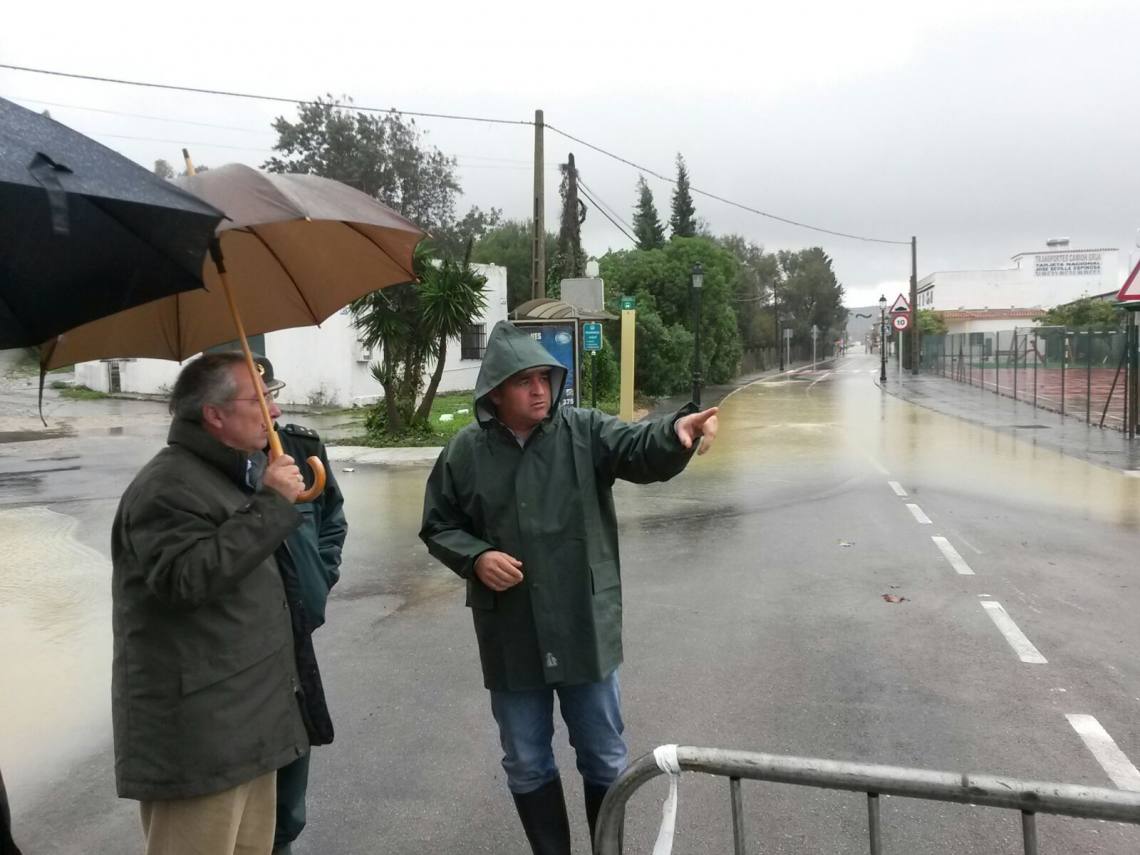 Alconchel y Lobato también han visitado vecino por vecino de Puente Romano para comprobar el estado de éstos y las viviendas, muchas de ellas con sus patios anegados. El tráfico en la travesía de Puente Romano además está cortado en estos momentos.