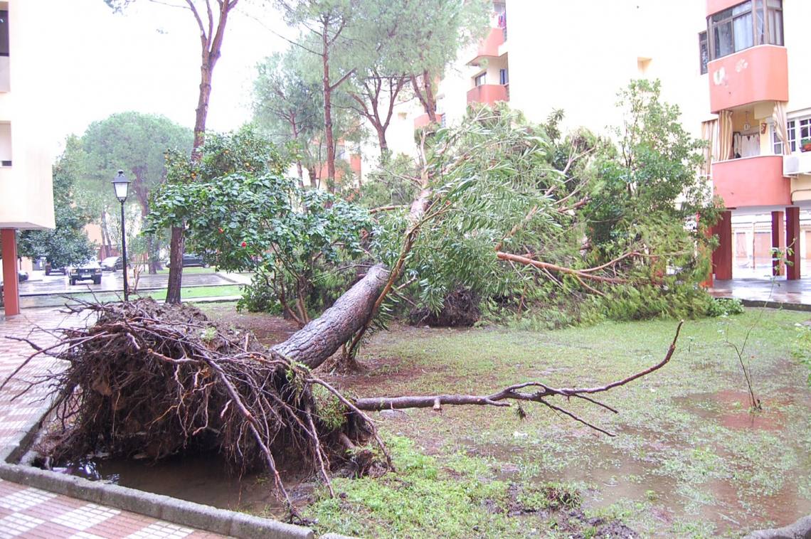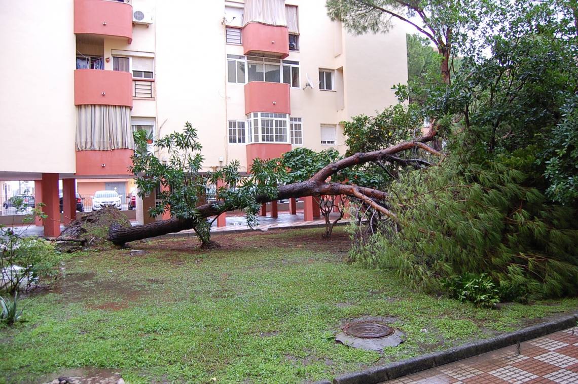 También ha caído un árbol de grandes dimensiones en la barriada de La Viñuela. Inundaciones de casas en la urbanización de Ciudad Jardín.