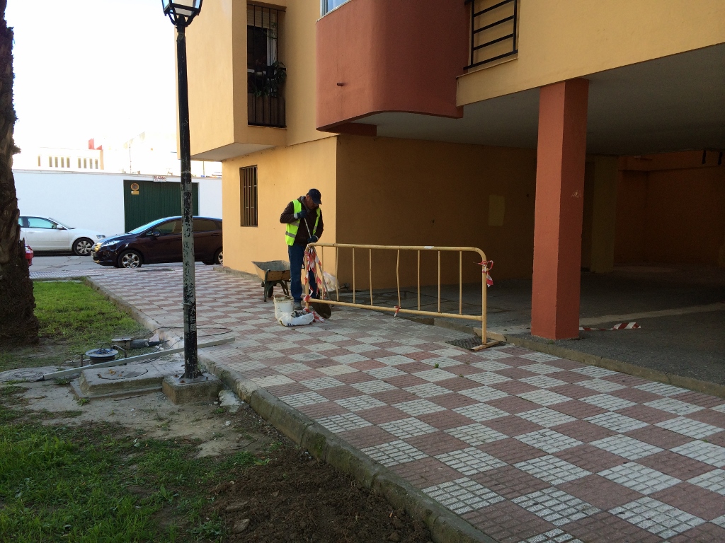 Alconchel ha destacado que “esta barriada ha estado abandonada durantes muchos años y este equipo de gobierno ha iniciado un plan de mejoras que se acometen estos días como son la sustitución de tramos de acerado y de solería que se encontraba en mal estado debido a las raíces de los pinos”.