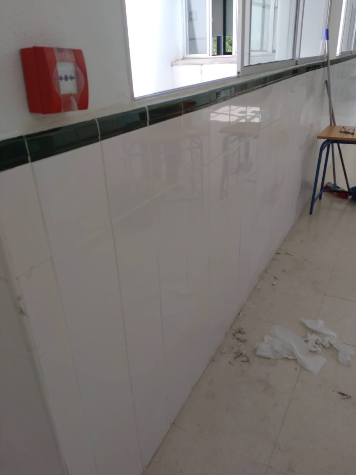 Otro de los trabajos ha sido la reposición de varios metros de alicatado caídos en el colegio San Ramón; la eliminación de barreras arquitectónicas en las calles Inmaculada y Lutero King en La Viñuela y la instalación de un banco en el colegio Sierra Luna.