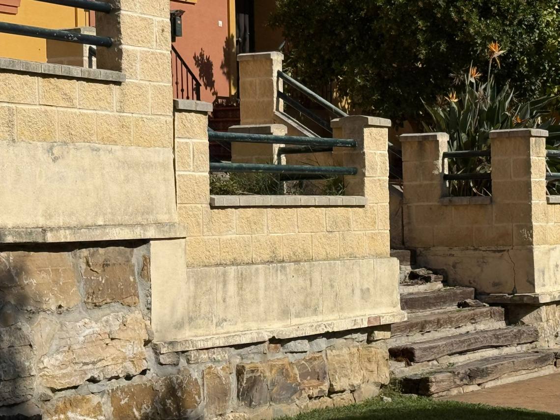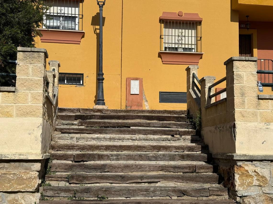 Estas escaleras, ubicadas en una zona verde con parque infantil de la urbanización Las Perenholas, sufren un grave deterioro por el uso y el paso del tiempo, pero también están afectadas por deficiencias que arrastran desde su ejecución.