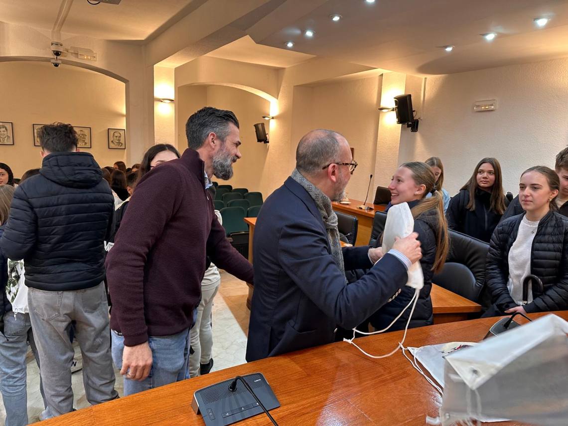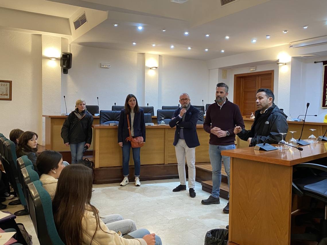 Álvarez ha dirigido a estos jóvenes unas palabras de salutación, comentándoles algunos detalles relacionados con lo más destacado de las fiestas y tradiciones de Los Barrios, y ha entregado a cada uno de ellos un obsequio en recuerdo de su paso por la villa.