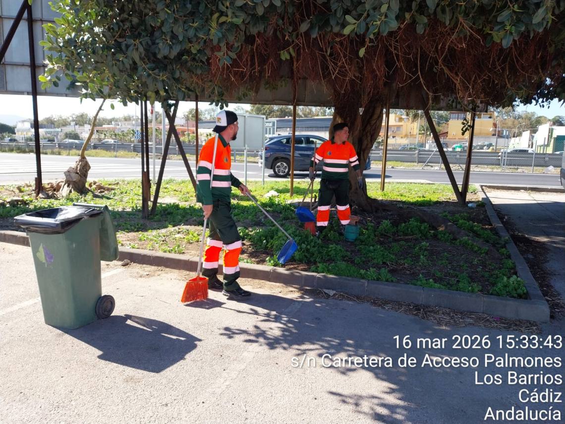 El Ayuntamiento de Los Barrios, a través de la delegación de Limpieza, ha puesto en marcha una actuación de limpieza de choque en el polígono industrial de Palmones, con el objetivo de recuperar el estado óptimo de la zona tras los últimos temporales y la intensa actividad derivada del tránsito de camiones.