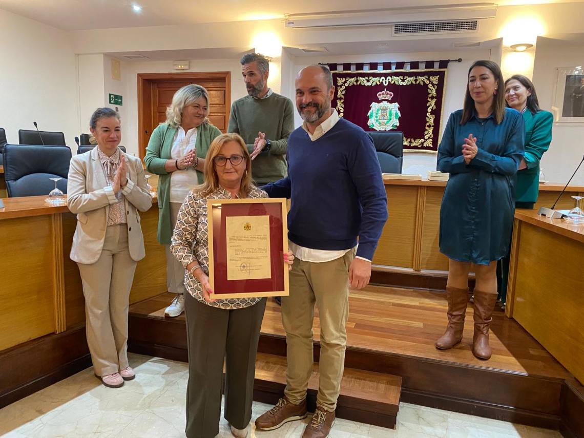 Los docentes homenajeados son: Antonio Moreno Manrique y María José Urbano Flores, del I.E.S. ‘Carlos Cano’; José Royan Benítez e Inmaculada Cuesta Domínguez, del I.E.S. ‘Sierra Luna’; Rosario Olivares Martín, del CEIP ‘Luis Lamadrid’, y Filomena Muñoz Secilla, de la Escuela Infantil ‘Los Alcornocales’.