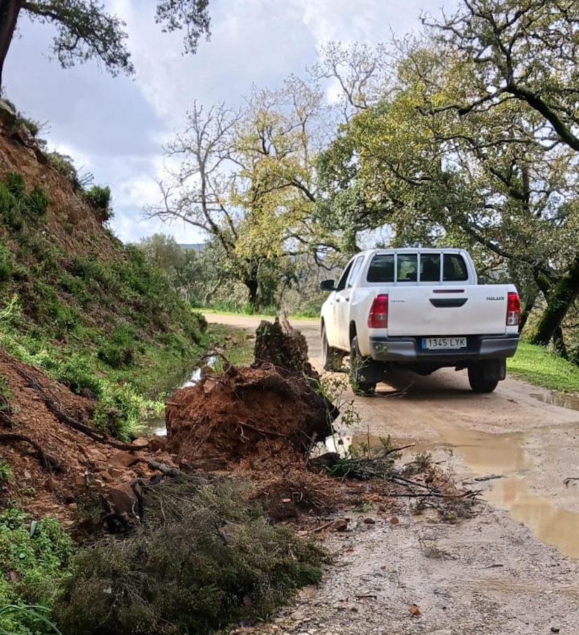 La delegación de Medio Ambiente, que dirige Antonio Dávila, advierte de los problemas de acceso que la intensidad de las recientes precipitaciones ha generado en los carriles de los montes de propio del término municipal, especialmente en la zona de la Sierra de Montecoche.