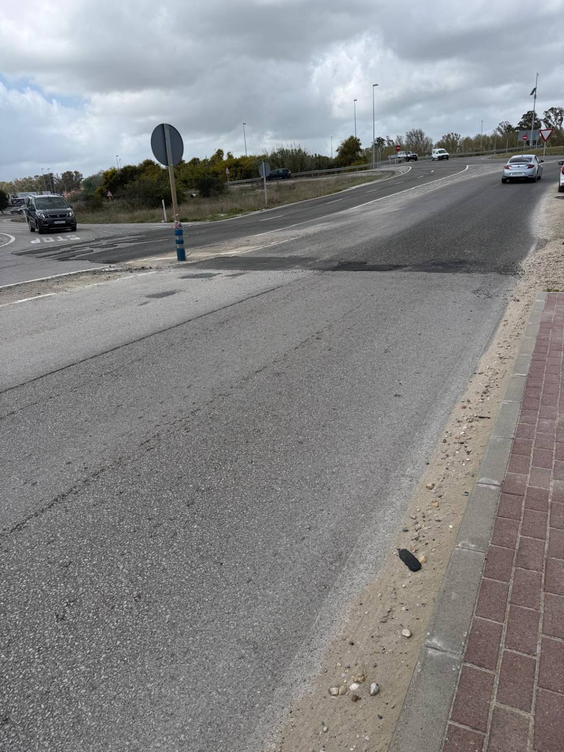 Uno de los puntos más afectados era este vial del Parque Empresarial de Palmones, donde el deterioro del asfalto había obligado a cortar un carril junto a los cines, provocando retenciones y problemas de tráfico. Estos trabajos ya han sido realizados, quedando la circulación restablecida con normalidad.