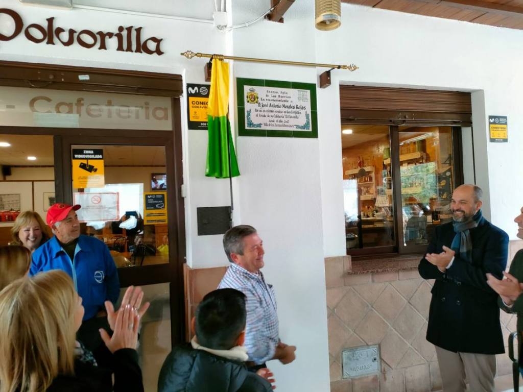 Una placa donde se recoge: “El Ayuntamiento de Los Barrios en reconocimiento a Don José Antonio Morales Rojas por su excelente servicio en Los Cortijillos al frente de la cafetería El Polvorilla desde el año 2007”.