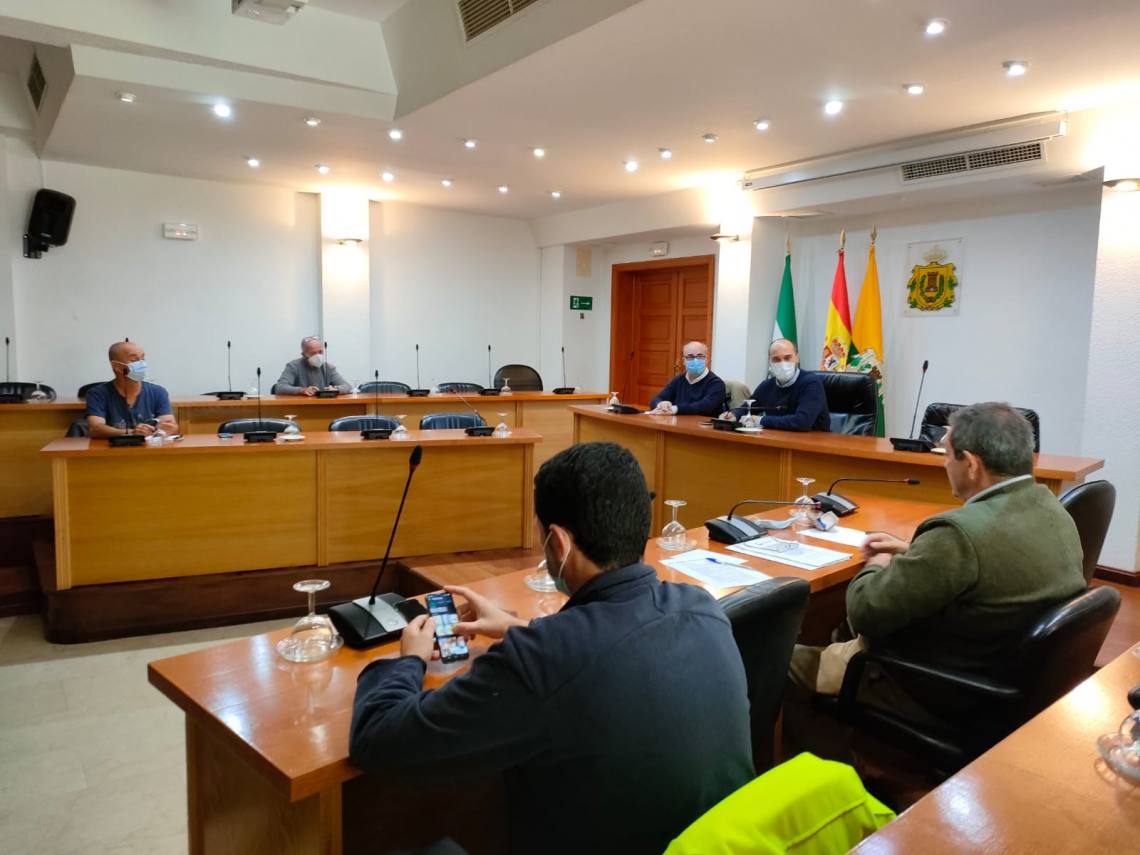 El alcalde de Los Barrios, Miguel Alconchel, y el concejal delegado de Medio Ambiente, José Antonio Gómez, han presidido esta mañana la reunión que se ha mantenido en el salón de plenos de la Casa Consistorial para sopesar la situación de escasez de recursos hídricos que se padece en el Campo de Gibraltar y analizar qué medidas se pueden añadir a las que desde el Ayuntamiento ya se vienen adoptando desde hace meses. En este encuentro han estado representadas también las delegaciones de Parques y Jardines y Obras y Servicios.