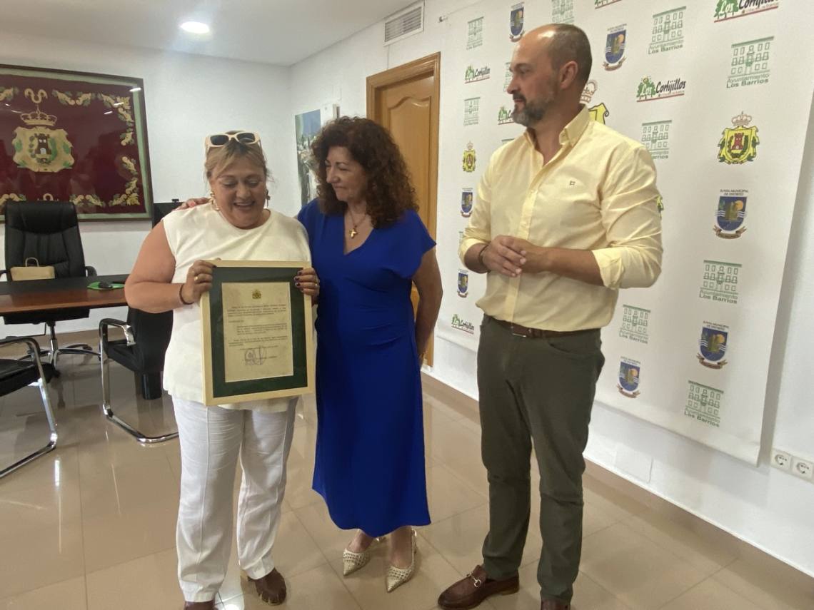 El alcalde de Los Barrios, Miguel Alconchel, y la delegada de Protección Civil, Geli Ferral, en nombre del equipo de gobierno y de la Corporación, han brindado hoy un emotivo y cálido reconocimiento a la trabajadora municipal Antonia Vinagre Gallego, con motivo de su reciente jubilación. El acto, que ha tenido lugar en las dependencias de alcaldía, también ha contado con la presencia del delegado de Economía y Hacienda, Manuel Muñoz, así como los ediles José Antonio Gómez, Carlos Torres y Cristina Silva.