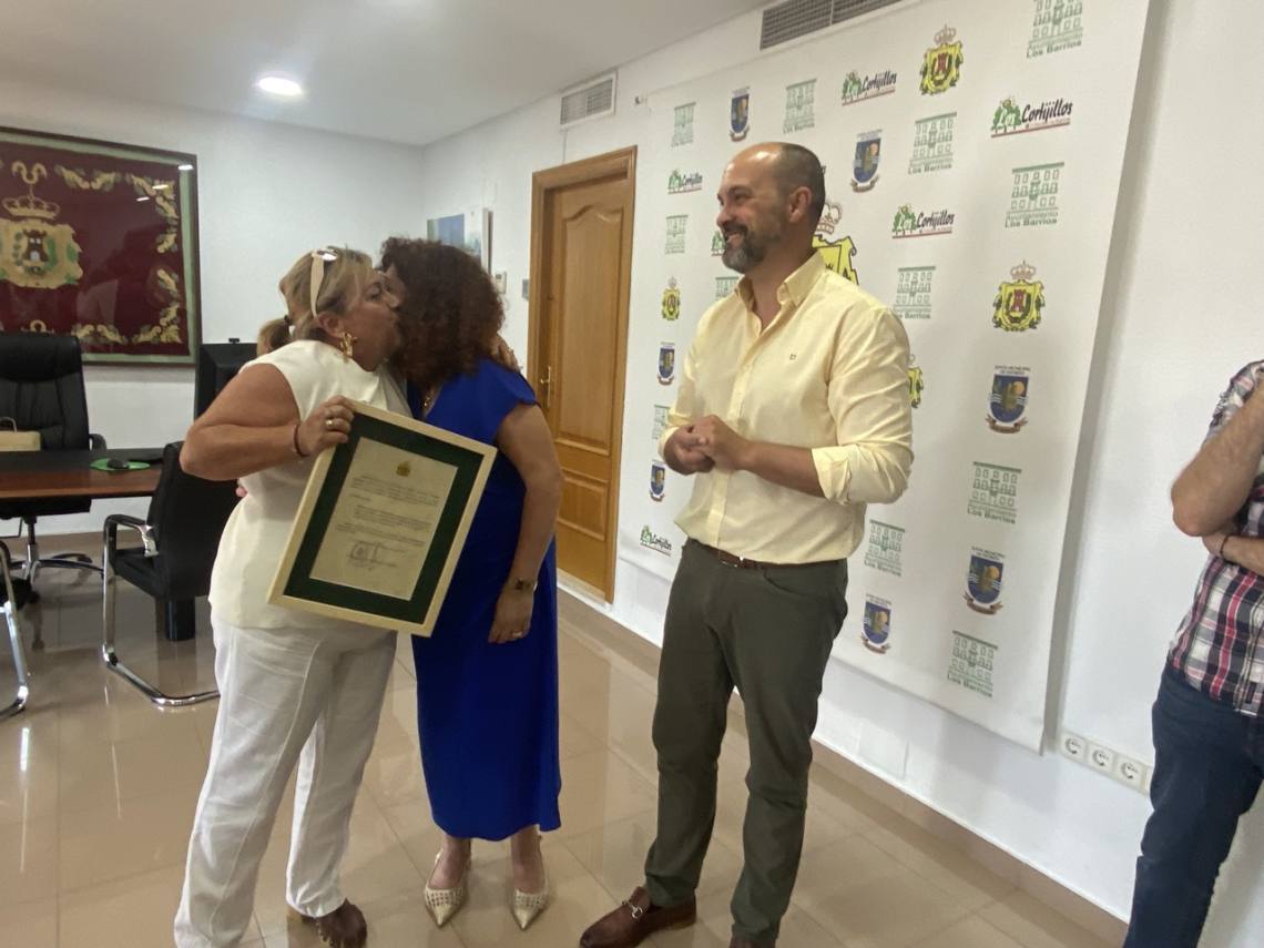 Geli Ferral, junto al alcalde, ha sido la encargada en esta ocasión de entregar la habitual placa conmemorativa a la homenajeada, en la que se expresa la gratitud de la administración local por su labor y su dedicación. Además, la delegada de Protección Civil ha tenido unas palabras especiales y emotivas para Toñi, recordando los vínculos que le unen a ella desde su niñez, dado que esta apreciada y querida funcionaria, que ahora pone término a su larga vida laboral inició, la carrera profesional en el Consistorio cuando su padre, Manuel Ferral Rodríguez, era interventor de la institución municipal.