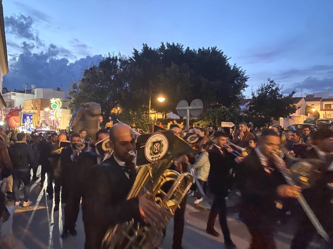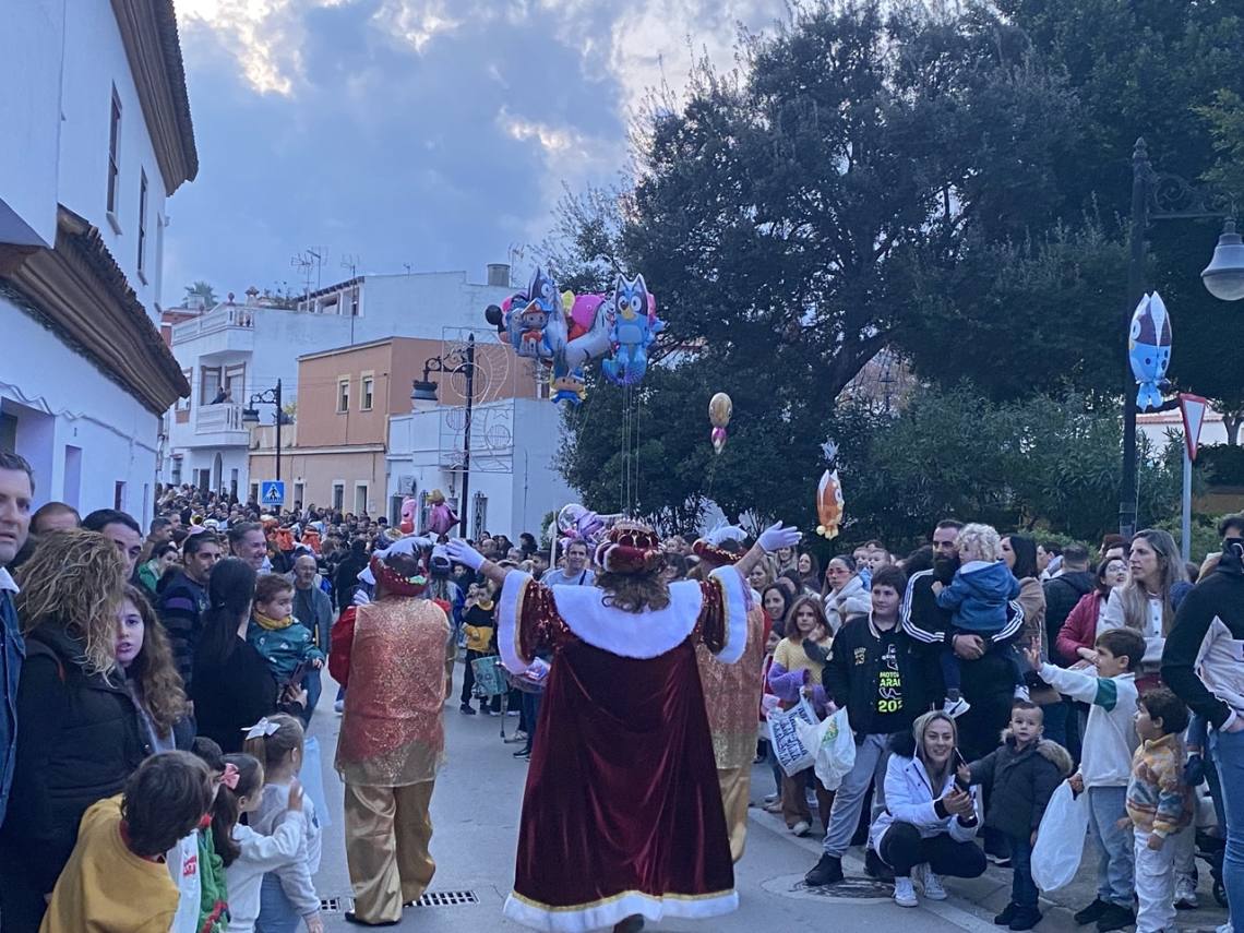 Algo más tarde de las 18:00 horas, la comitiva real, seguida de una muchedumbre de mayores y pequeños, ha iniciado el recorrido que tenía previsto por la localidad empezando desde la barriada El Palmarillo.