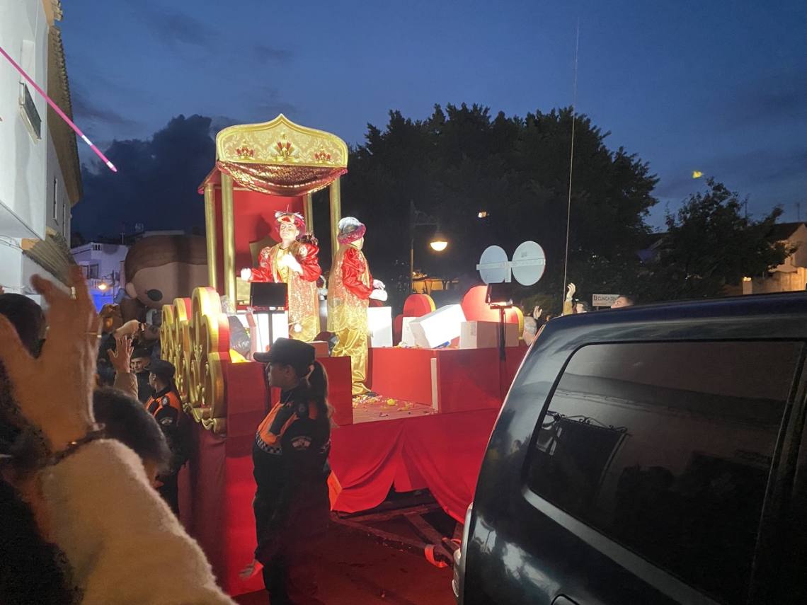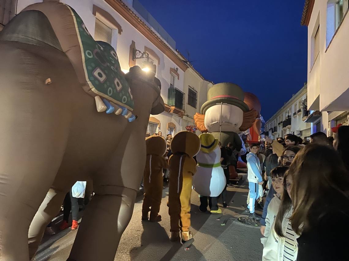 Varias carrozas engalanadas, figurantes y animadores, la banda de música ‘Maestro Infantes’ y el oportuno dispositivo de seguridad, integrado por la Policía Local y Protección Civil, han enfilado la avenida Alcalde Juan Rodríguez en dirección al recinto ferial, pasando por la Rotonda del Toro y la avenida Carlos Cano, para repartir felicidad, además de muchos caramelos, entre la gente, especialmente el público infantil.