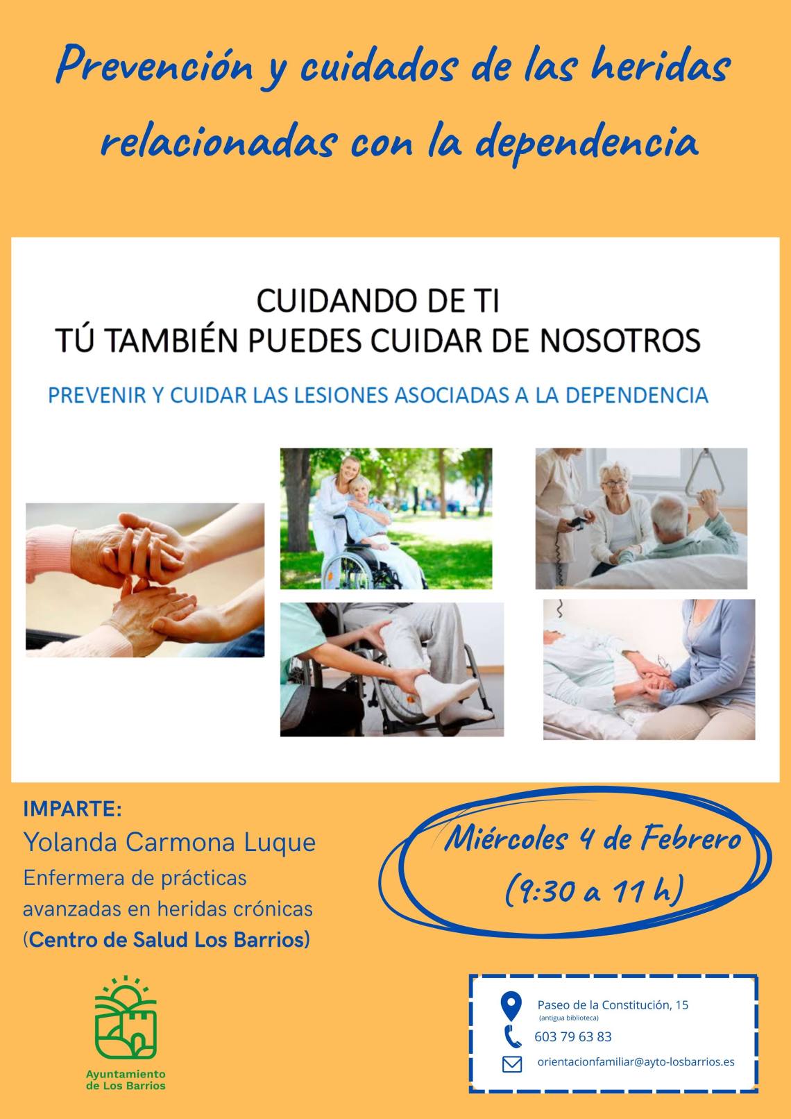 El Centro de Orientación Familiar (COF), que dirige el concejal Carlos Torres, ha programado para el próximo miércoles 4 de febrero el taller formativo titulado ‘Prevención y cuidados de las heridas relacionados con la dependencia’, dirigido a cuidadores y personas interesadas en mejorar la atención y el bienestar de personas en situación de dependencia.